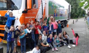Kids achter het stuur Tijdens een uitgebreide voorlichtingsdag hebben leerlingen van groep 7 en 8 uit Badhoevedorp achter het stuur van een vrachtwagen gezeten.