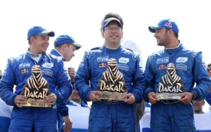 Kamaz-podium Dakar 2015 Het Russische Kamaz-geweld is in de Dakar 2015 oppermachtig gebleken bij de trucks: drie Kamaz-rijders delen het podium.