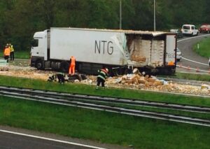 Chauffeur reed achteruit over A27 Dinsdag 29 april veroorzaakte een Roemeense chauffeur een bizar ongeluk op de A27 bij Eemnes, hier de feiten.