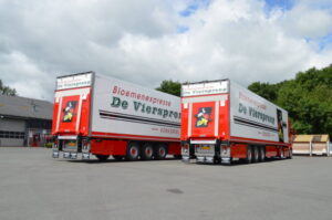 Zeg het met bloemen Bij Viersprong Bloemenexpresse BV uit Kerkdriel draait alles om bloemen. Het bedrijf heeft twee splinternieuwe Krone opleggers aangeschaft die op maat gemaakt zijn voor het vervoer van bloemen.