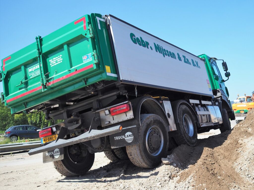 Gebroeders Nijssen in Mijnsheerenland ontwikkelden zich in meer dan 60 jaar tot een veelzijdig partner voor loonwerk, grondverzet, aanneming, groenvoorziening, verhuur, levering van zand, grind en grond. Daarnaast verricht men constructiewerk, spuit- en straalwerk. Al deze activiteiten vragen om een eigen en gevarieerd materieelpark, waarbij voor het transport vier knijperauto’s in gebruik zijn. “Voor het werk waren we op zoek naar een kipper met een gestuurd wide-spread tandemstel”, legt Jaap Nijssen uit. Hij staat samen met zijn neef Jaco en nicht Melissa op het punt om als derde generatie het ruim zestig jaar bestaande familiebedrijf over te nemen van vader en oom Arjan en Leo. “We hadden al een Iveco Trakker en twee Volvo’s rijden, waarvan er een is uitgerust met een later gemonteerde widespread. Dat wilden we nu ook, maar dan wel een ‘af fabriek’-oplossing en met een dealer in de buurt voor het onderhoud. Dan neemt het aantal keuzemogelijkheden snel af.”