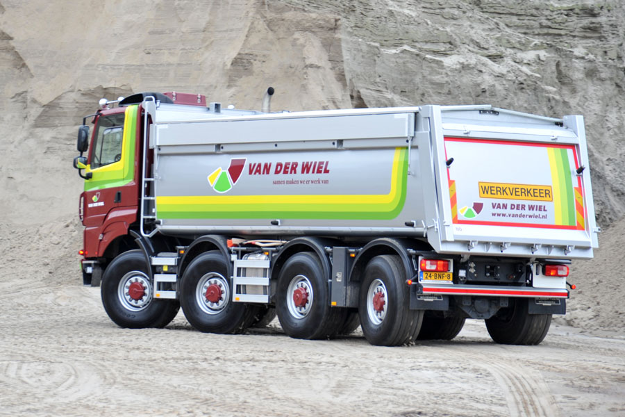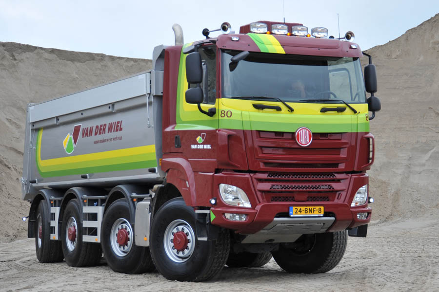 De nieuwe Tatra is voorzien van een Gijsbertsen kipper opbouw met kunststof milieukleppen, een overdruksysteem en diverse klant specifieke aanpassingen. Van der Wiel Transport heeft een uiteenlopende vloot voor verschillende transportactiviteiten. Bouw en grondverzet voertuigen nemen een belangrijke plaats in en daarvoor zet het bedrijf verschillende types voertuigen in. Het wagenpark bestaat onder andere uit 8×4, 10×4, 6×6 kippers. Voor het echt zware werkis de Tatra 8×8 aangeschaft.