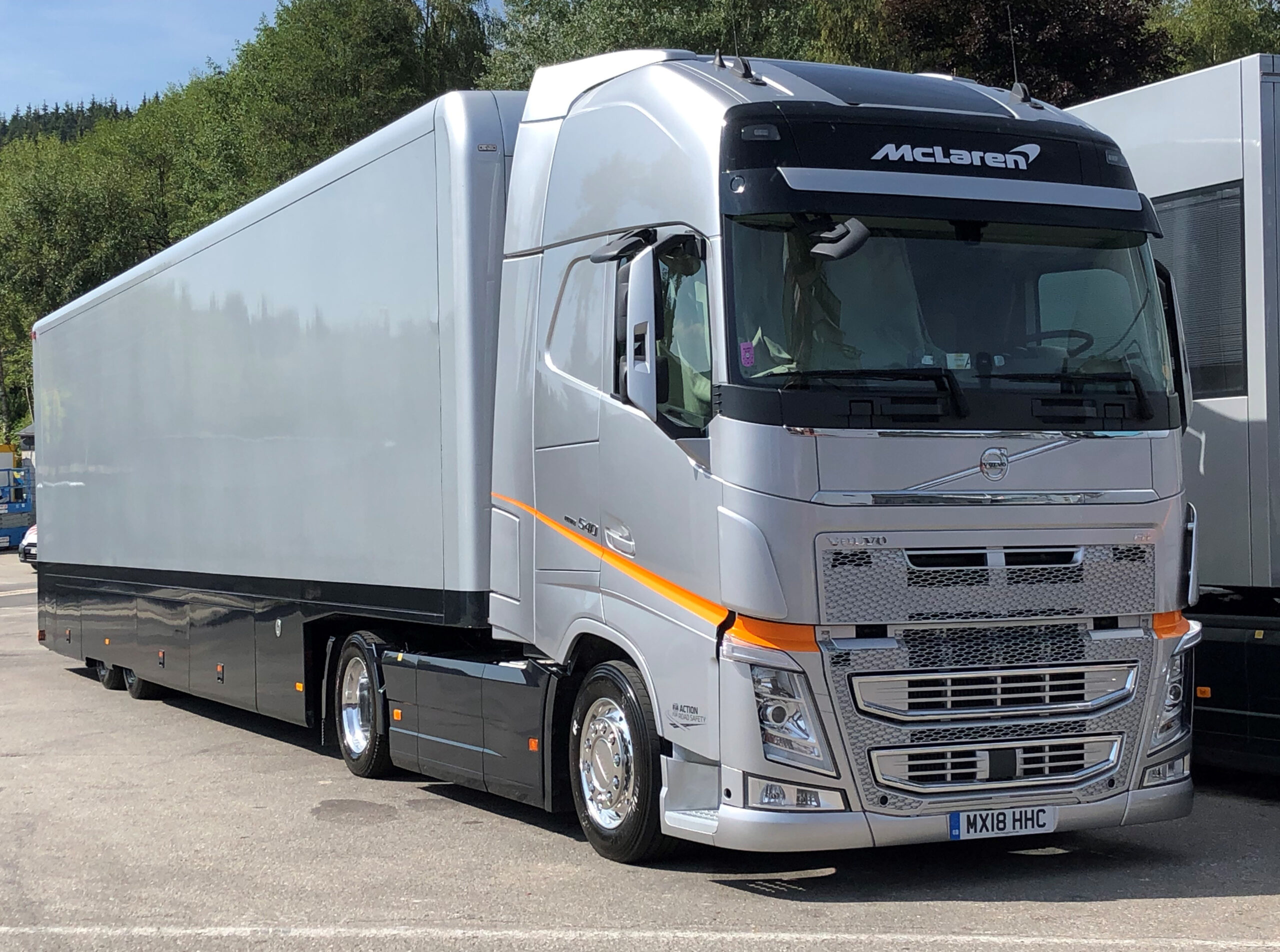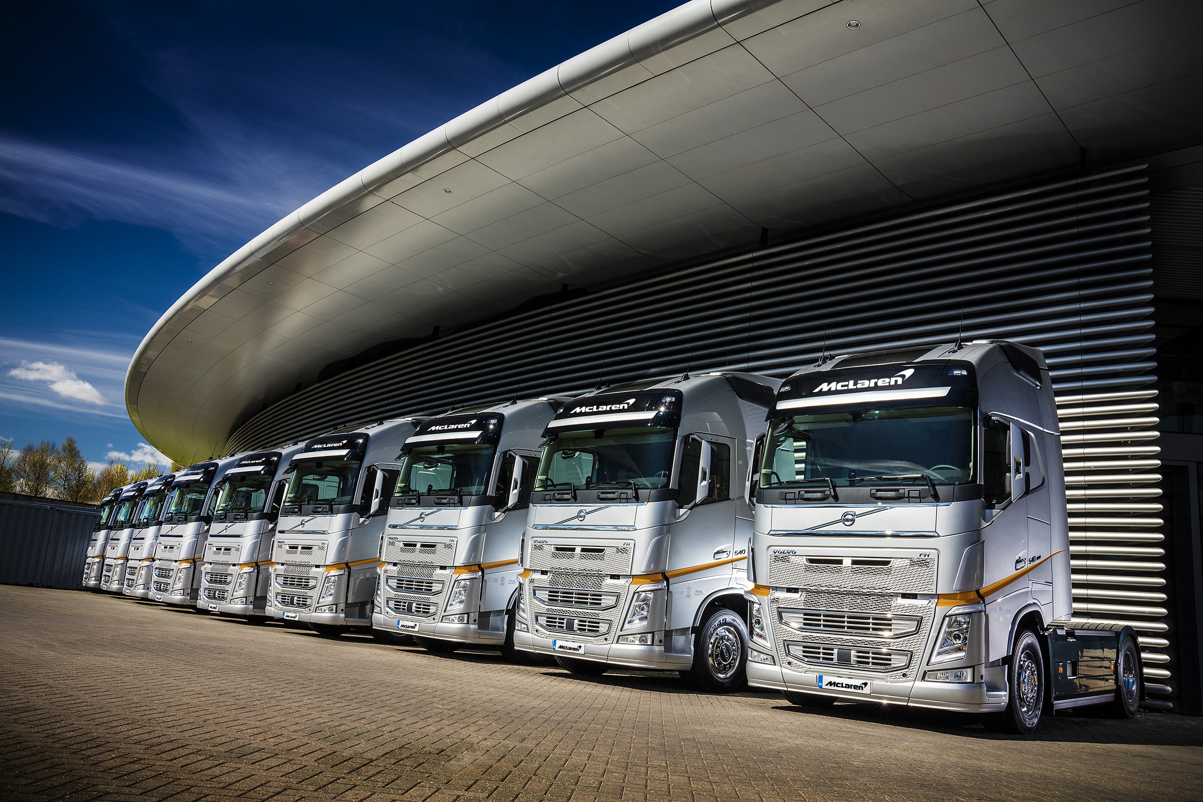 De trucks werden geleverd aan McLaren Racing als onderdeel van een grote sponsorovereenkomst met Volvo Trucks. In de seizoenen 2018 en 2019 brachten de trucks de raceauto’s en uitrusting van het team naar de Europese GP’s van het Formule 1-wereldkampioenschap. De Volvo FH’s, met het stuur aan de goede kant, zijn voorzien van alle luxe aan boord en zijn verkrijgbaar in twee chassishoogten, te weten: X-Low en Medium. De kilometerstanden variërend van 30.000 km tot 60.000 km.