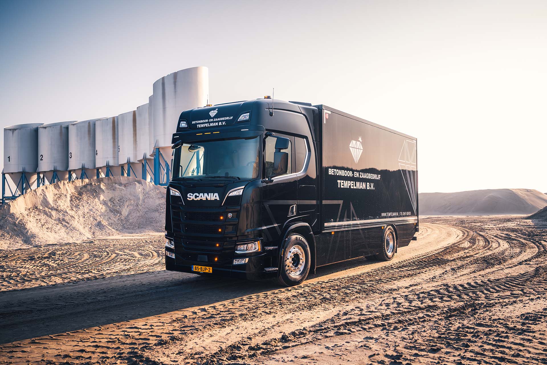 Het derde generatie familiebedrijf uit Markelo is gespecialiseerd in het boren, zagen en frezen van beton en steenachtige materialen met diamantgereedschap. Om het zware materieel veilig over te brengen naar de werklocaties, is deze Scania uit 2017 toegevoegd aan het wagenpark.