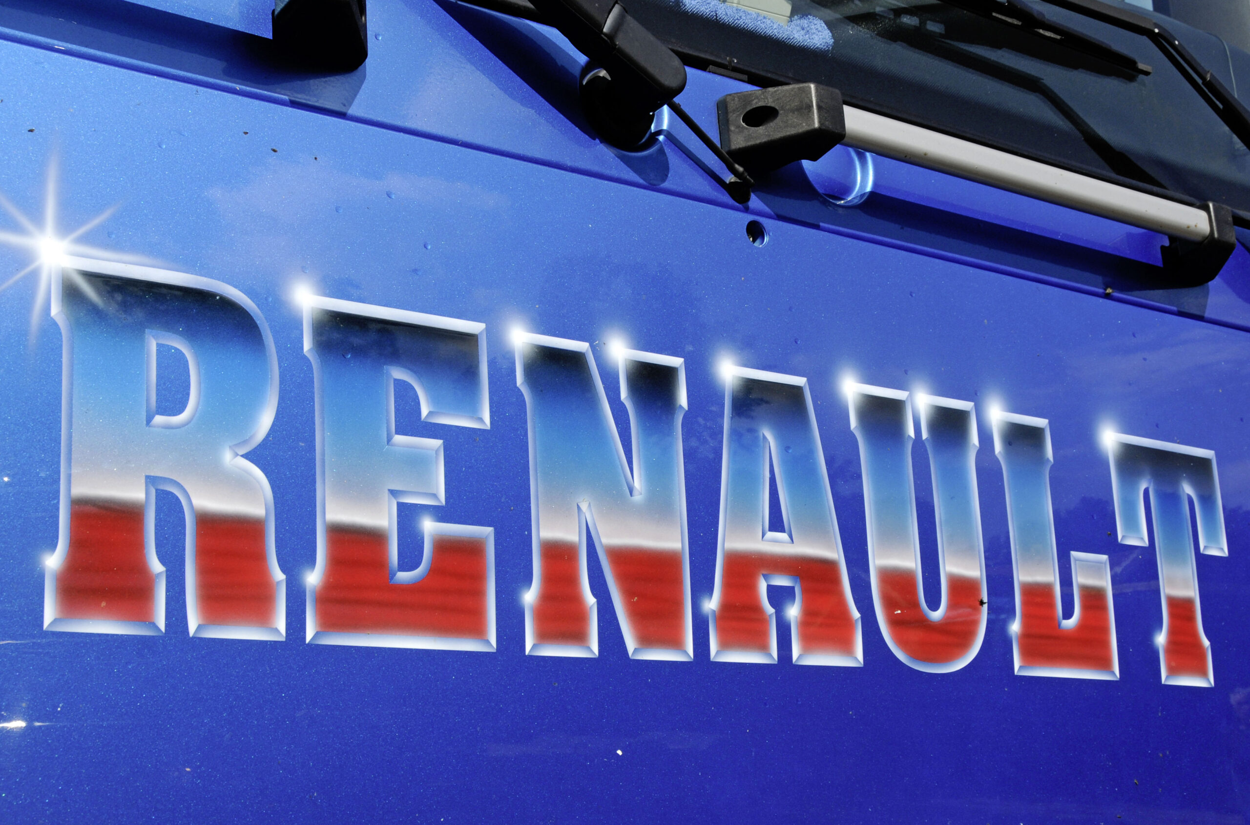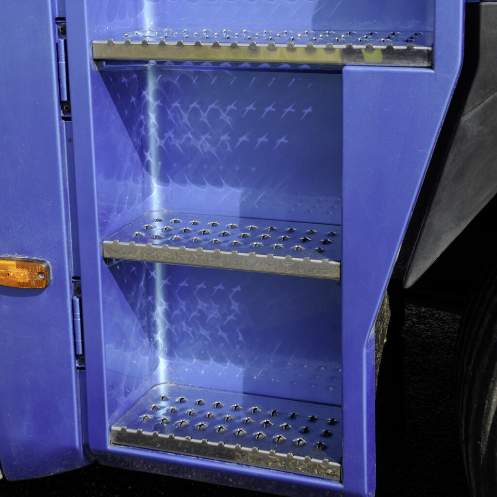 - Gepolijste RVS-treden zie je niet snel op een Renault Magnum.