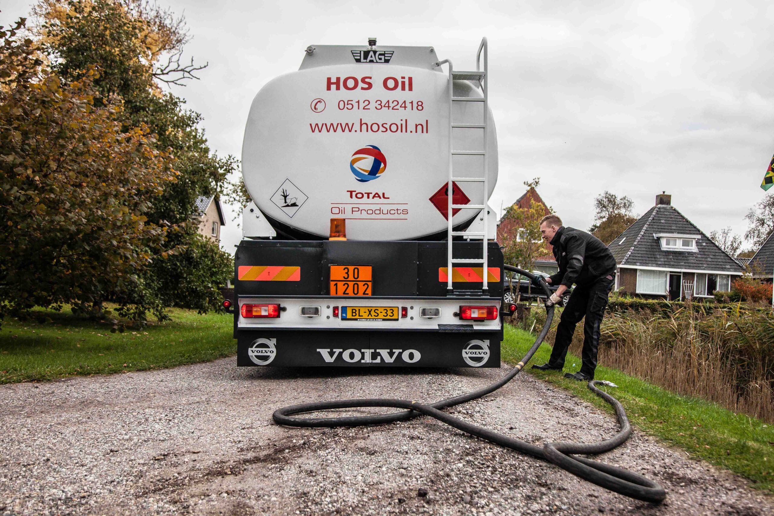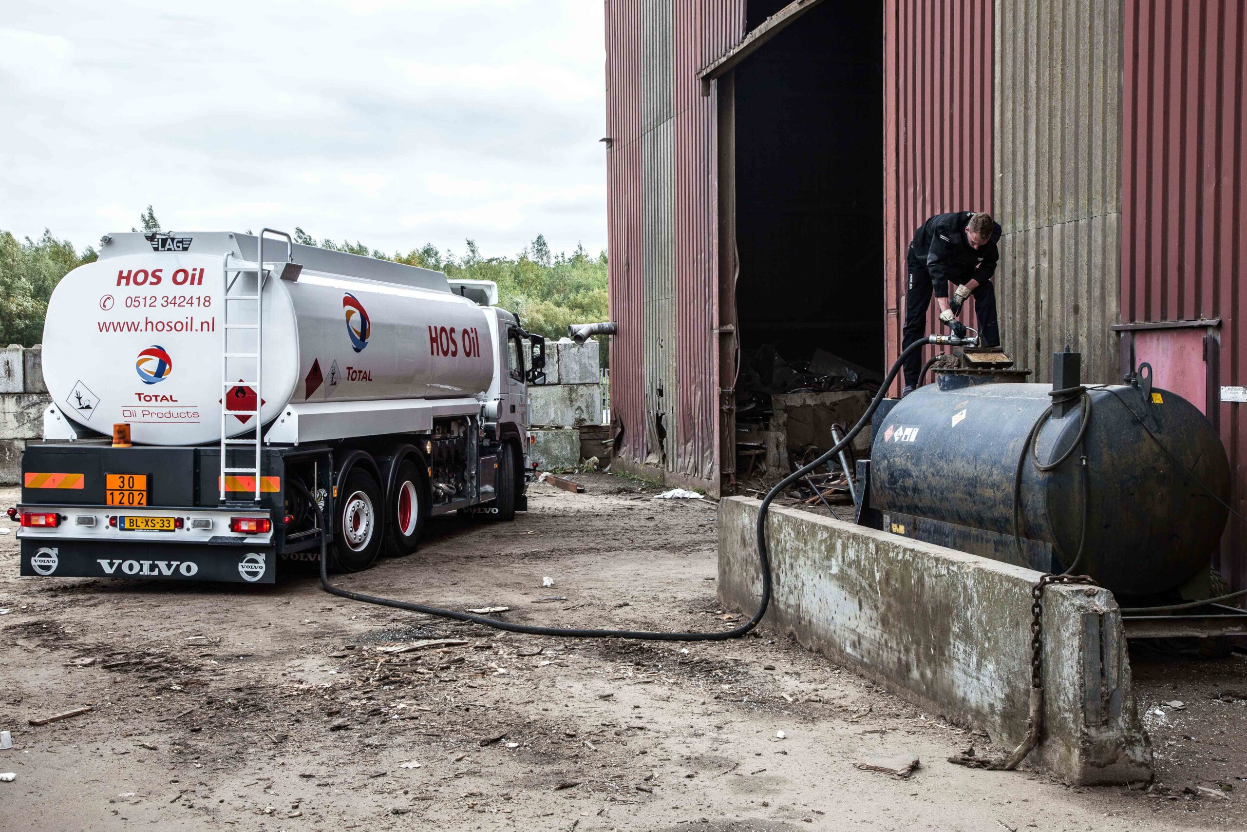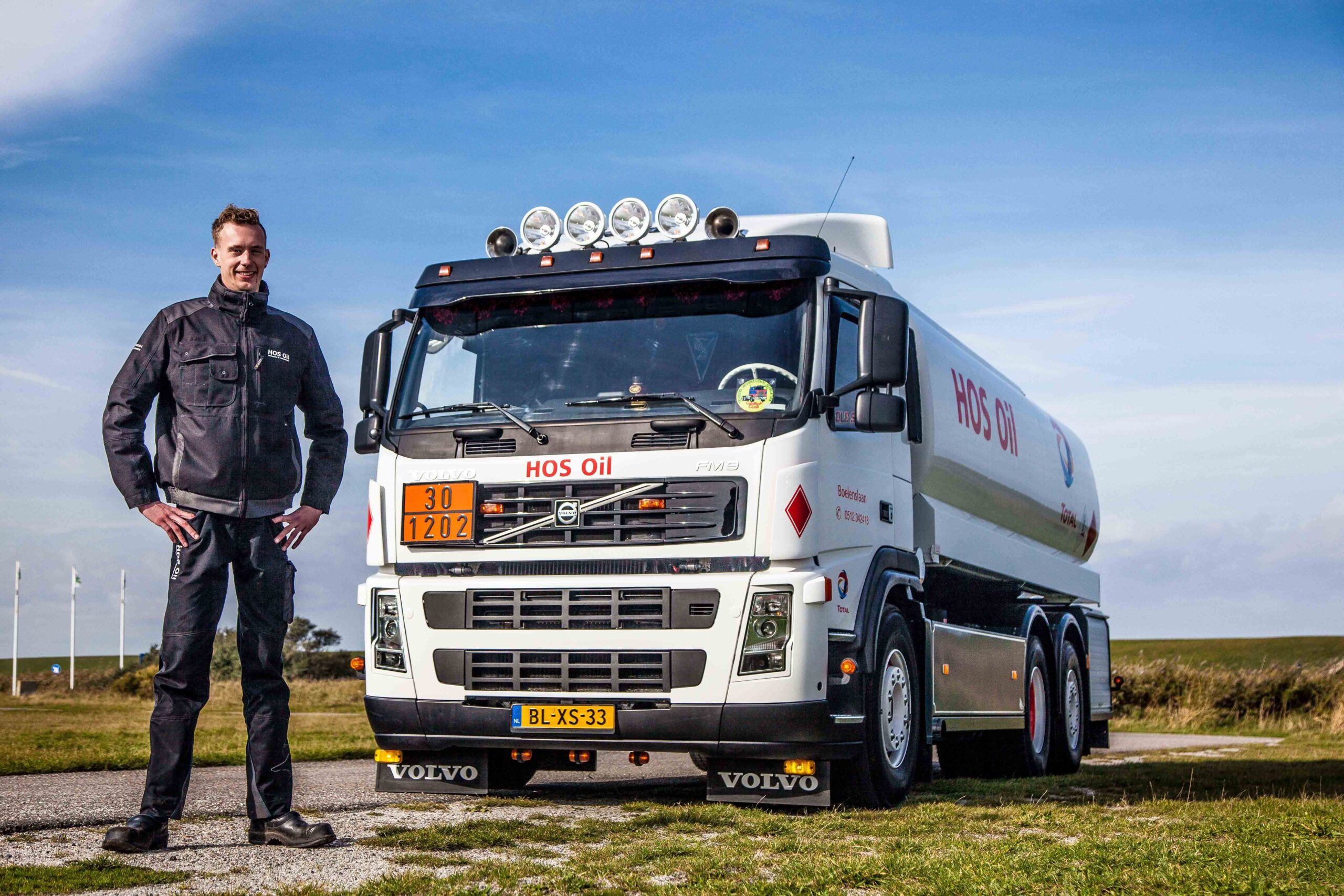 HOS Oil heeft drie tankstations en een truck wasstraat in Surhuisterveen. Ook verkoopt het bedrijf smeermiddelen. Daarnaast levert het met drie vrachtwagens brandstoffen aan de zakelijke eindverbruiker. Eén van die auto’s is de drieassige tankwagen van Mark Riemersma. In de cabine valt direct het grote witte stuur op. Mark vertelt trots over ‘zijn’ Volvo. “Hij is zestien jaar oud en handgeschakeld. Maar het is een geweldige wagen en hij rijdt als nieuw. We hebben een eigen werkplaats en doen al het onderhoud zelf. Het opknappen van deze auto heb ik samen met Johan gedaan. Dat is voor ons ook een hobby. We vinden het gewoon leuk om daarmee bezig te zijn. Het scheelt daarbij een stuk dat we allebei erg technisch zijn.”