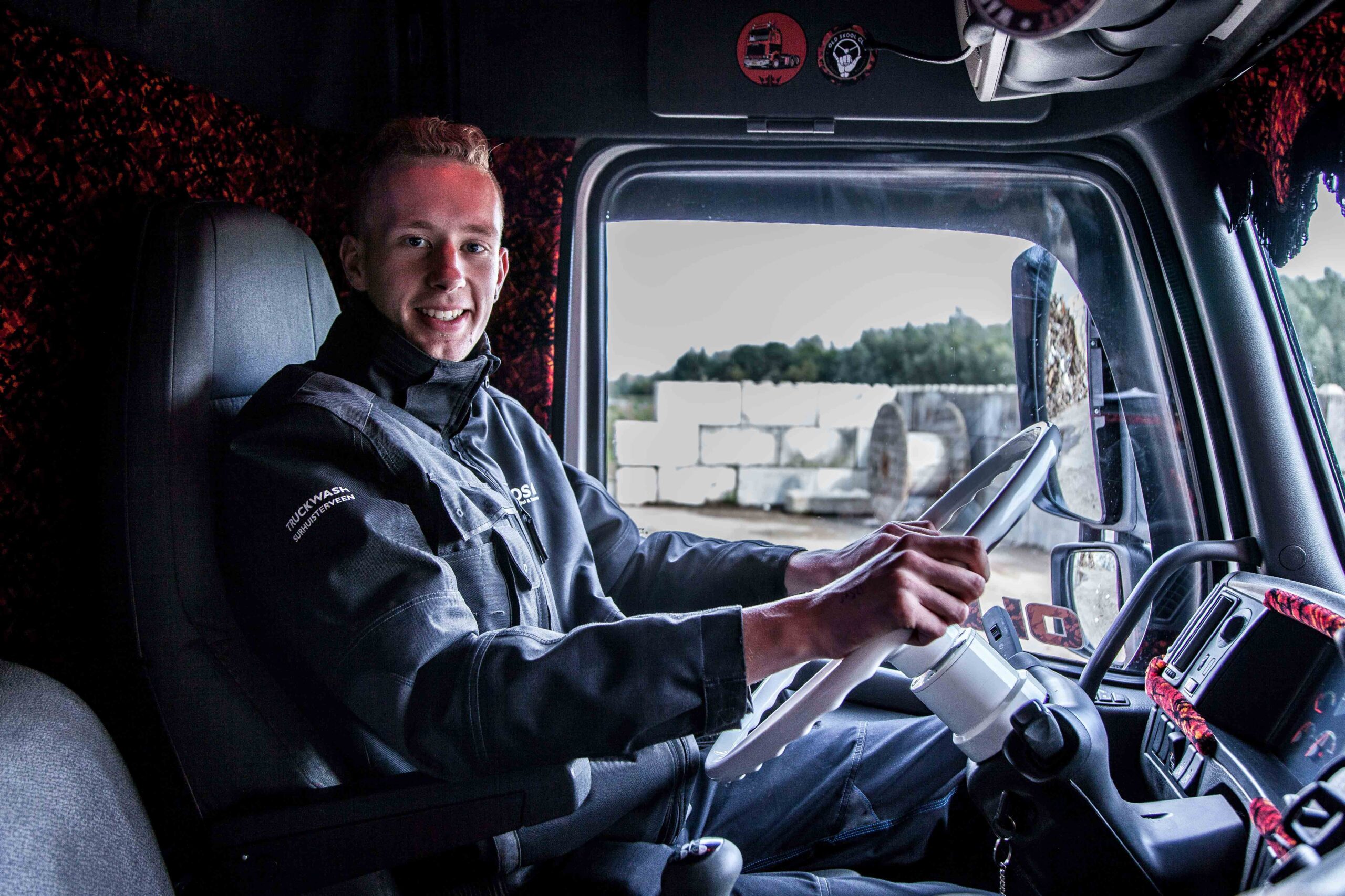 Als jochie begon Mark, als bijbaantje, in de truckwasstraat van HOS Oil. Ook tijdens zijn opleiding kon hij er blijven werken. “Ik ga vier dagen per week naar school en daarnaast werk ik bij HOS Oil. Op het Friesland College in Heerenveen volg ik de opleiding Manager Transport en Logistiek en over een jaar ben ik daarmee klaar. Als kind wist ik al dat ik chauffeur wilde worden. Ik ging veel met mijn vader mee die toen ook chauffeur was. Nu zit hij niet meer op de vrachtwagen. Mijn ouders adviseerden mij om niet voor een gewone chauffeursopleiding te kiezen. Bij deze opleiding komen allerlei aspecten van het transport aan de orde. Bijvoorbeeld de planning, maar ik heb ook mijn ondernemerspapieren gehaald. Niet dat ik die nodig heb, het bevalt me uitstekend bij HOS Oil. Maar je weet het nooit.”