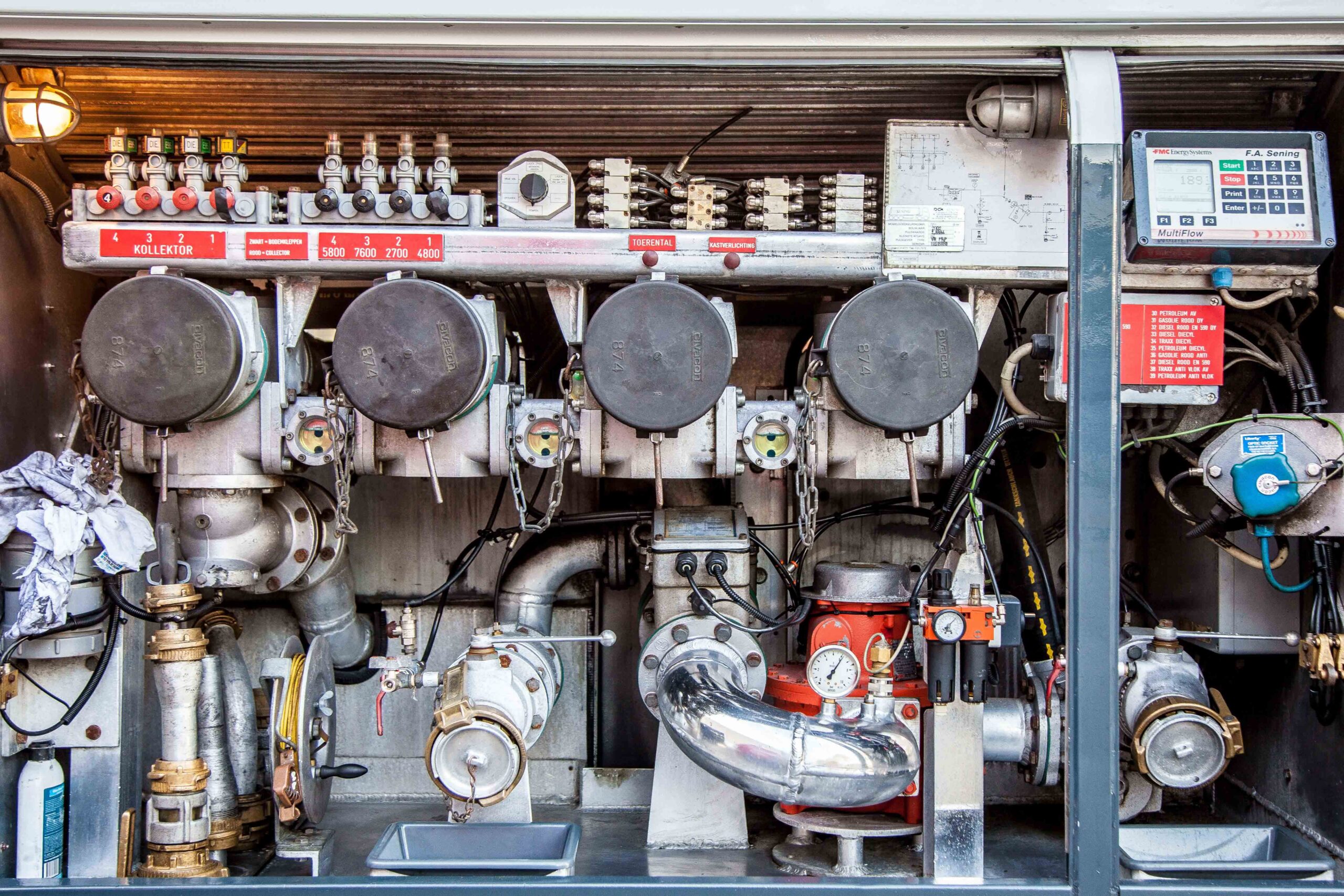 - Bedieningskast voor het afleveren van brandstoffen. Alles glimt.