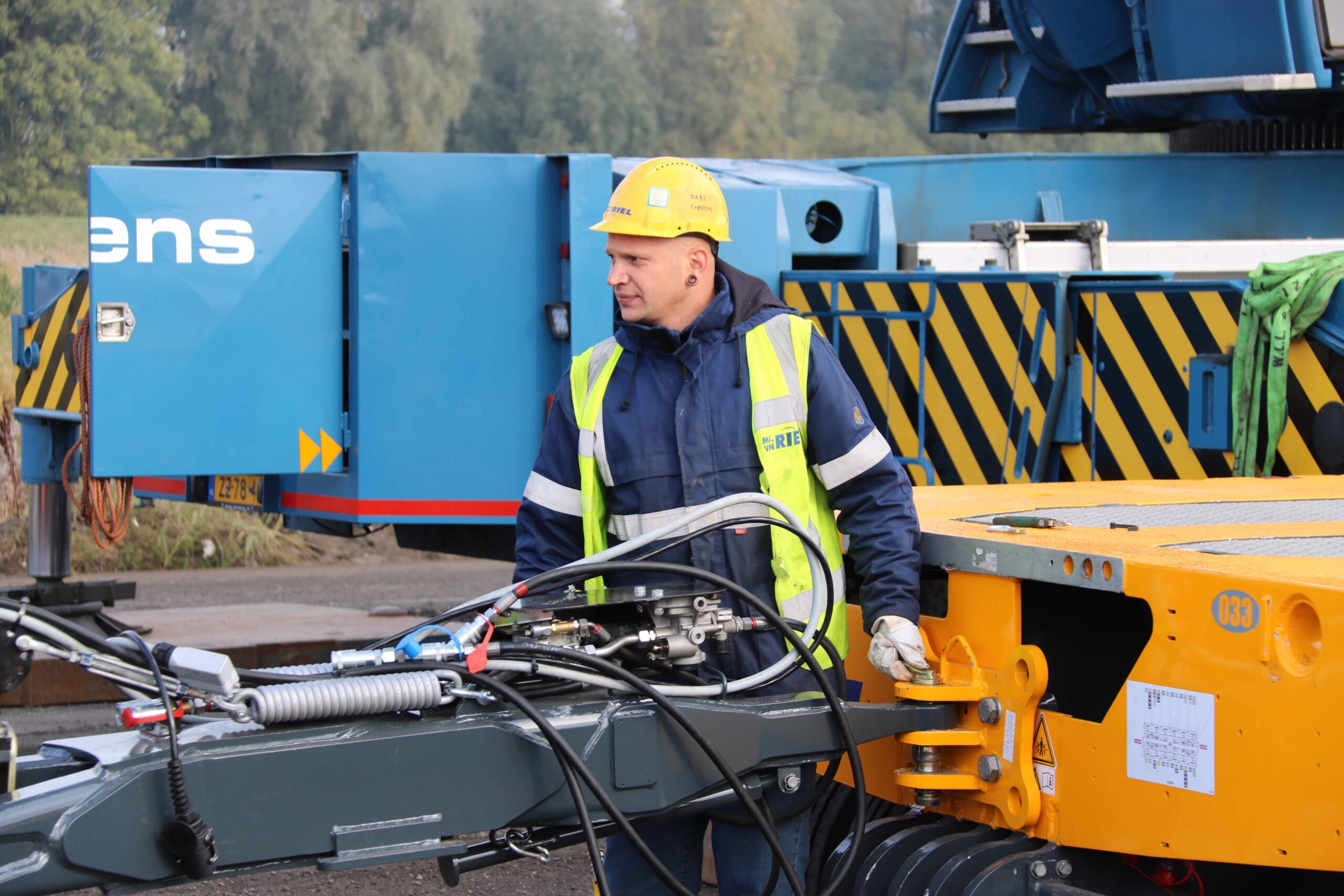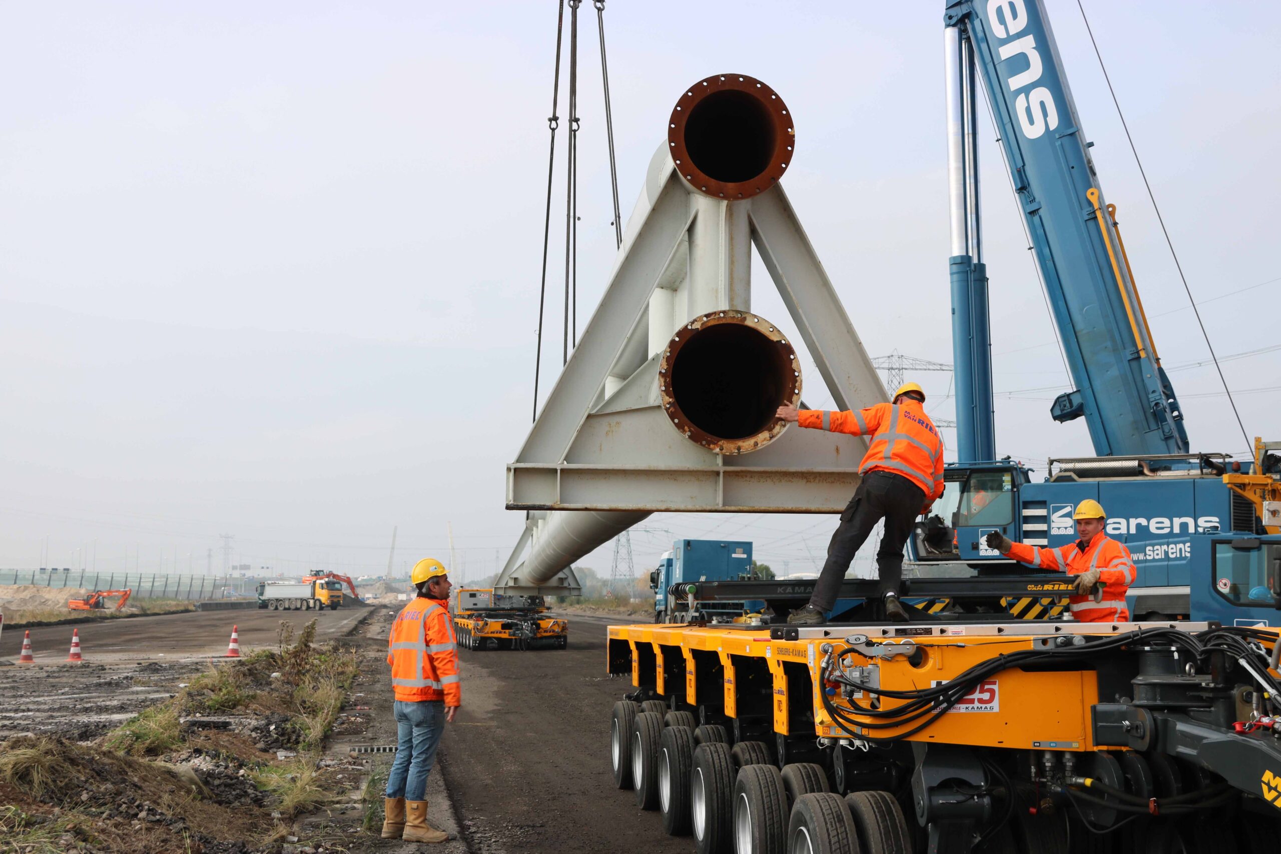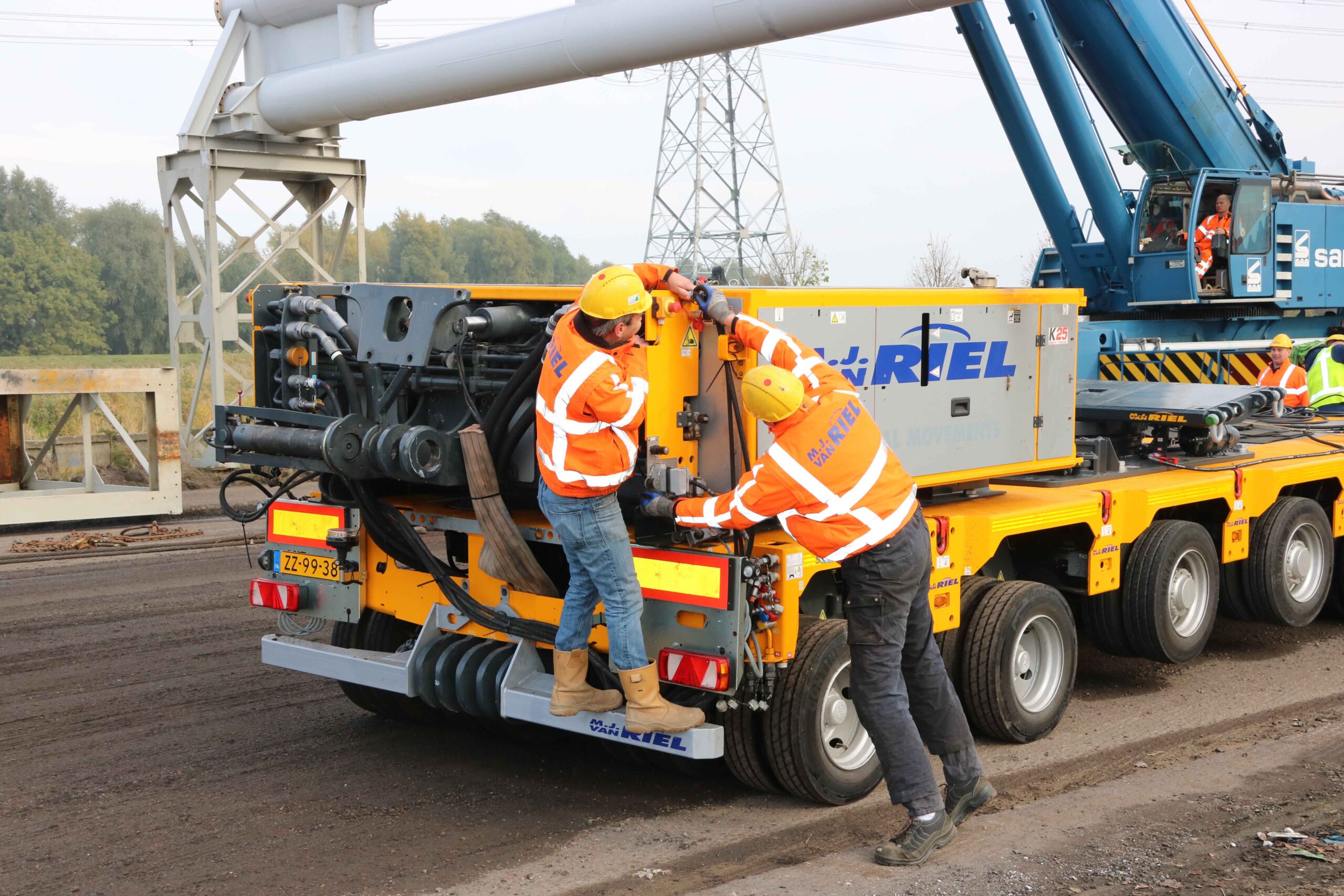 M.J. van Riel werd ingeschakeld om dit gevaarte te verplaatsen naar Moerdijk. Het familiebedrijf zit in de kraanverhuur, transport en industriële verplaatsingen en verkoopt en verhuurt heftrucks. Afgelopen juli werd de vloot uitgebreid met vier Kamag K25 H modules met in totaal 18 aslijnen en meer dan 720 ton laadvermogen. Een unicum in Nederland en dat hebben ze gemerkt bij Van Riel. “Dit is onze 53ste klus met deze modules”, zegt projectleider Niels van Hulten van Van Riel die ook aanwezig is in Muiden. “Voor veel klussen zijn onze modules dé oplossing. Ze sparen duizend euro per dag uit; dat zijn de kosten voor de huur van een grote kraan. Wij kunnen overal komen met deze modules, voeren ons kunstje uit en gaan weer.”