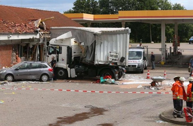 Een tragisch ongeval, gisteren bij Raststätte Ostetal aan de A1 in Sittensen. Een 73 jarige chauffeur reedt op dinsdagmorgen met zijn trekker-opleggercombinatie het gebouw binnen van het restaurant. Hoe het ongeval heeft kunnen gebeuren is onduidelijk. Door nog onbekende oorzaak verloor de man de macht over het stuur en chrashte daarbij frontaal in het wegrestaurant met nabijgelegen tankstation.