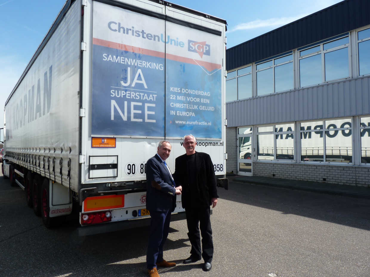 Zijn keuze voor billboard-trailerdeuren is daarom geen verrassing maar wel origineel. De firma Koopman heeft meer dan veertig trailers voorzien van de boodschap van Van Dalen, en zijn partij de ChristenUnie. De veertig trailers zijn voornamelijk in de Benelux onderweg maar een enkeling zal ook in Duitsland te spotten zijn.