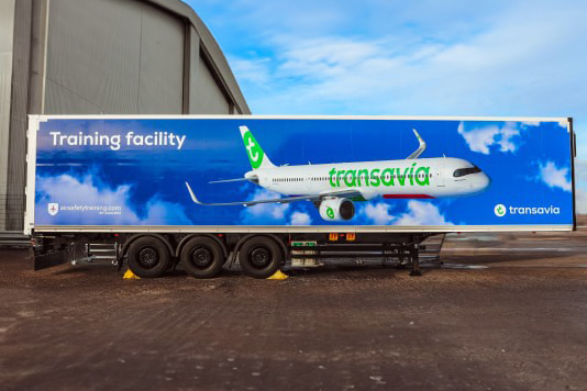 Transavia doet crewtraining in de regio met trainingsoplegger
