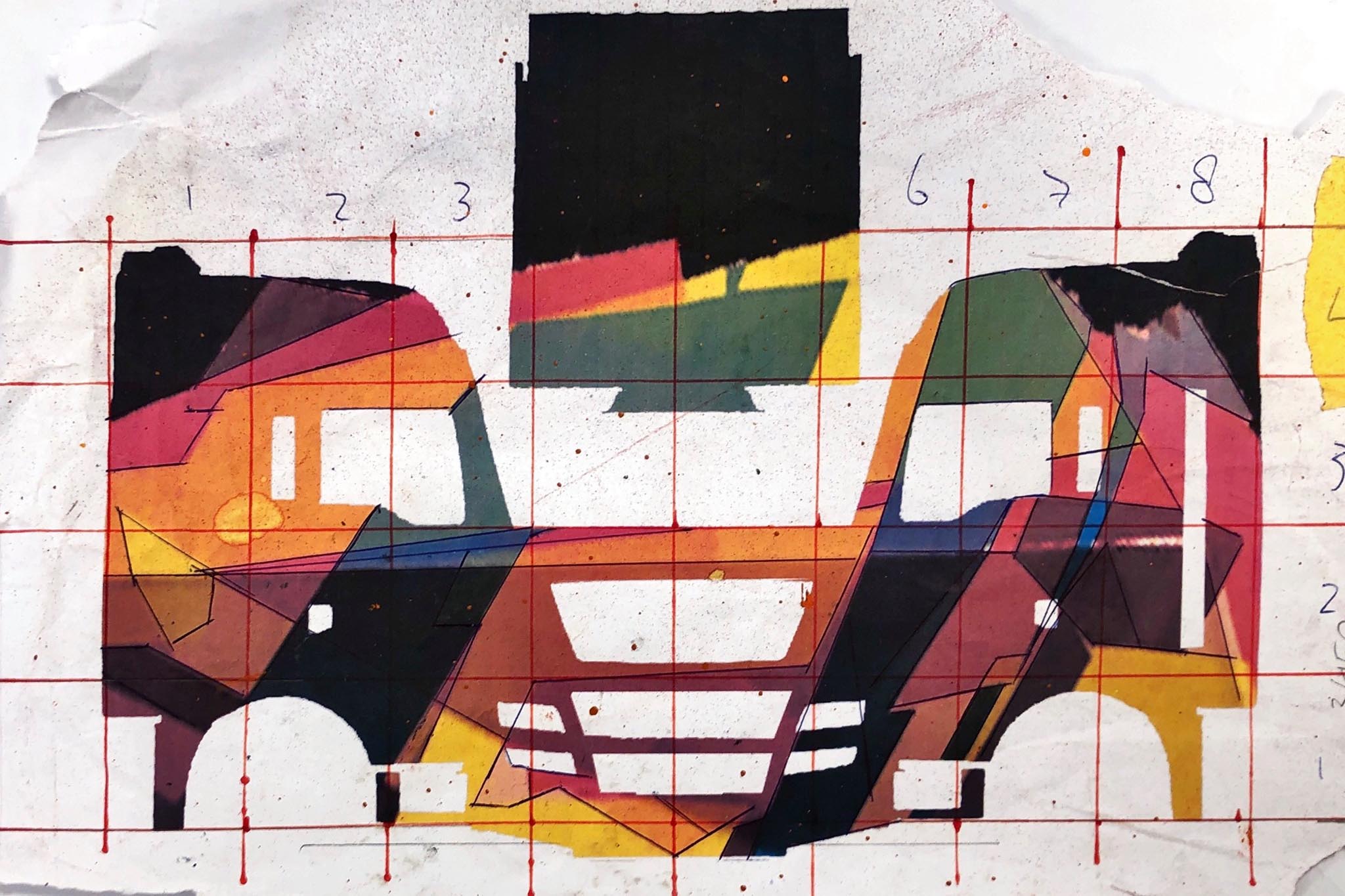 - Aan de hand van dit ontwerp spoot kunstenaar Marcel Thelen de graffiti op de truck.
