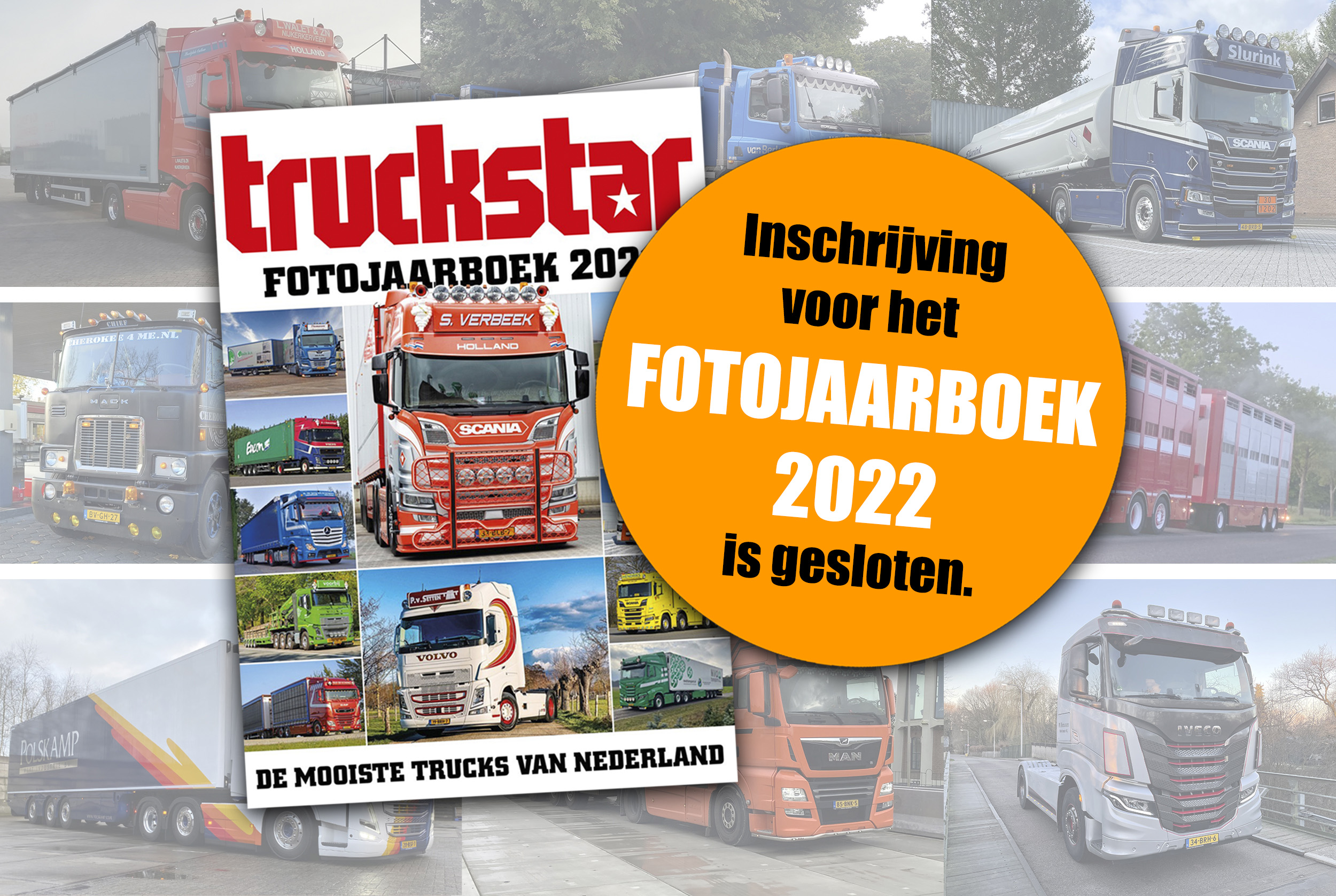 De inzending voor het het Fotojaarboek 2022 is gesloten, het is dus helaas niet meer mogelijk om foto’s van jouw truck in te sturen. Het Fotojaarboek 2022 verschijnt begin mei en is vanaf dan te koop.