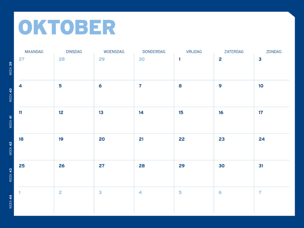 - Formaat van de kalender is 40×30 cm (ingeklapt)