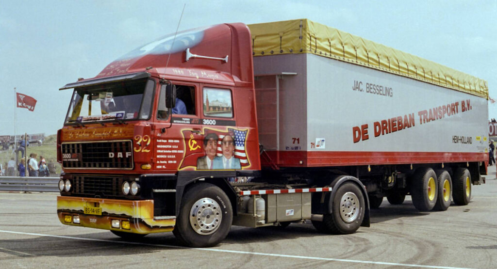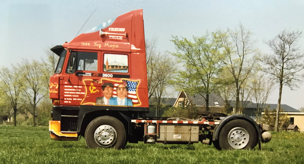 Halverwege de jaren 80 ontstond het idee één van de nieuwe vrachtwagens van een thema te voorzien. Het was de tijd van de koude oorlog die ten einde liep, met Reagan en Gorbatsjov die elkaar ontmoetten en de perestrojka. Het leidde tot de Vredestruck, die in 1986 op de weg werd gezet. De nieuwe DAF 3600 kreeg aan beide zijden een airbrush met de beide wereldleiders. Rechts was verder het Witte Huis te zien, links als tegenhanger het Kremlin. Een grote vredesduif op de spoiler maakte het plaatje compleet. Zoon Richard vertelt dat die DAF ervoor zorgde dat zijn vader zelfs in Rusland werd uitgenodigd voor een ontmoeting met hoge regeringsleiders, al was dat helaas niet met Gorbatsjov zelf. Na de Vredestruck zouden nog drie thematrucks volgen totdat in 1996 het doek viel voor de firma.