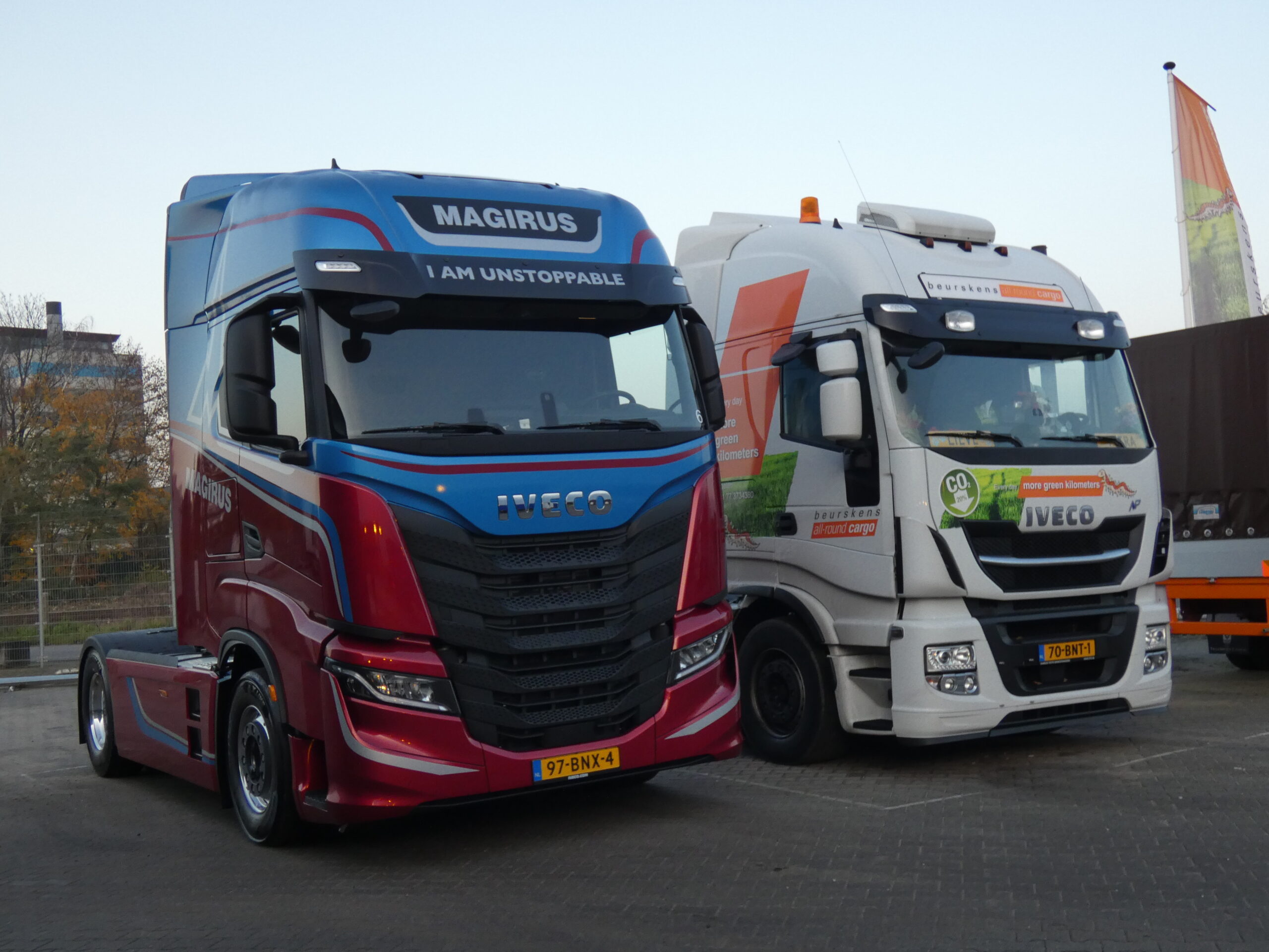 Het is net een beetje licht aan het worden als we op maandagochtend 07:30 uur een woonwijk aan de rand van Venlo inrijden. Even bekruipt ons het gevoel dat we niet goed zitten. Achter de huizenrij blijkt echter een groot industrieterrein te zijn waar Beurskens gevestigd is. Er zijn diverse loodsen, een groot parkeerterrein en zelfs een eigen wasstraat. Dit is best een grote firma waar met diverse merken wordt gereden, waaronder Iveco.