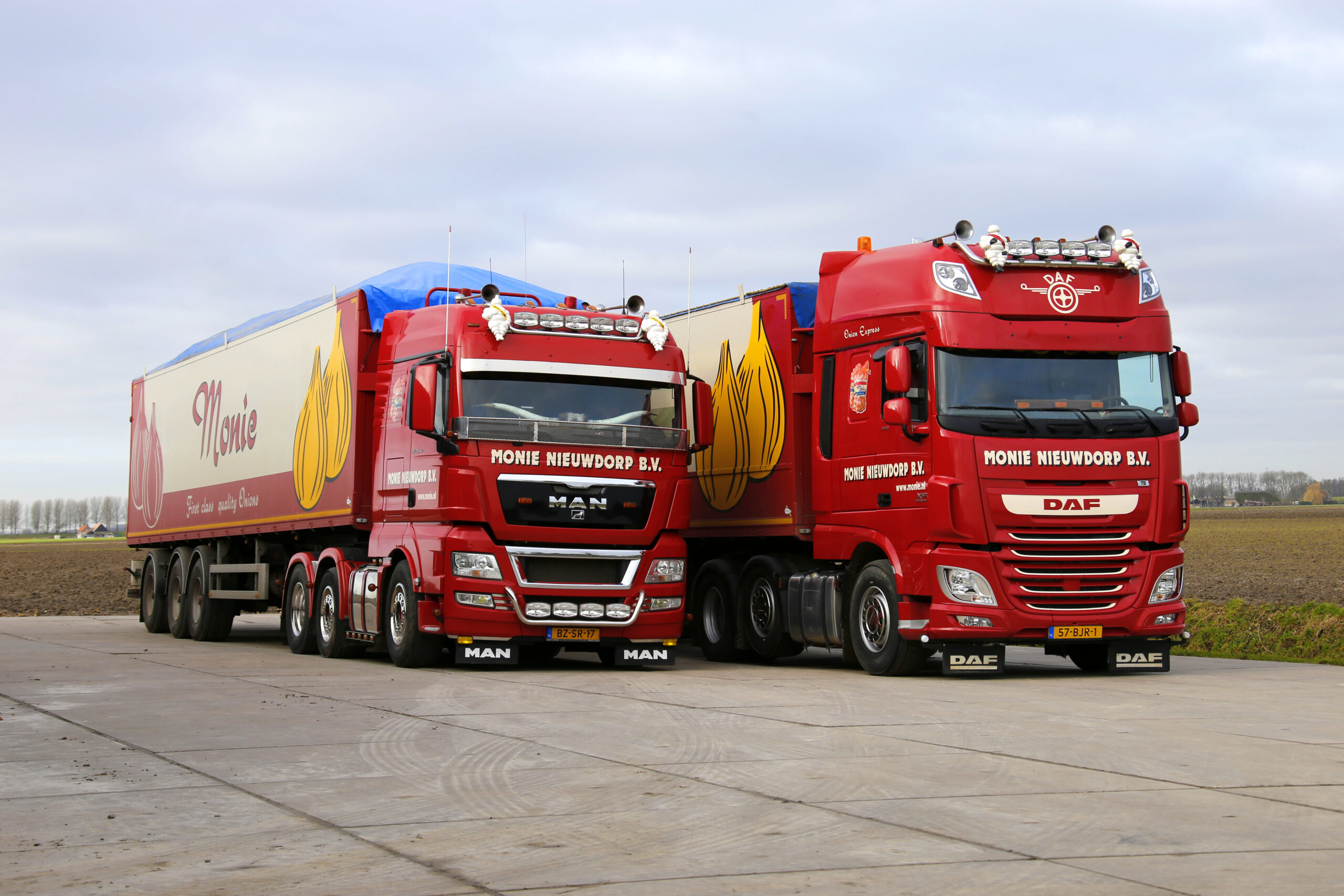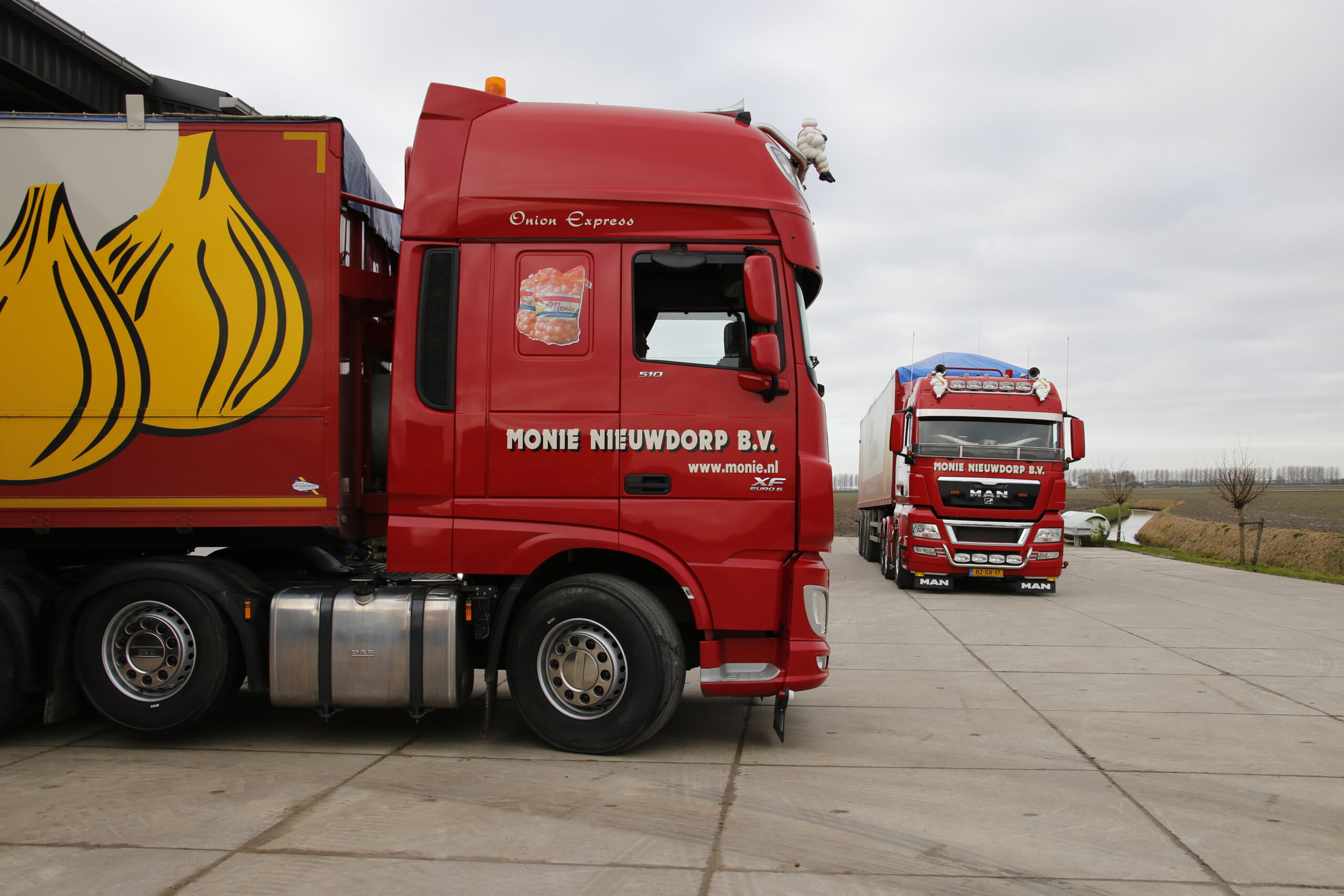 “Ik rijd voor Monie. Dit staat voor Moerdijk en Nieuwdorp, waar het bedrijf gevestigd is. Monie is een uienverpakker. De uien worden op ons bedrijf ontdaan van losse vellen en gesorteerd op grootte. Daarna worden ze verpakt. Dat kan in netjes van een pond, maar ook in bigbags van 1.200 kilo. Vroeger deed Rinus dit alleen, maar sinds zes jaar rijden we met twee auto’s’’, legt Peter uit. Maar er is niet altijd genoeg werk voor twee auto’s en Rinus is de eerste man. “Bij mijn vorige werkgever was ik vaak dagen van huis, nu ben ik elke avond thuis. Het slapen in de cabine mis ik helemaal niet. Ik lig liever naast mijn vrouw.” Als Rinus het transport alleen af kan, doet Peter ander werk. Hij springt dan op een heftruck of helpt de monteurs van het bedrijf.