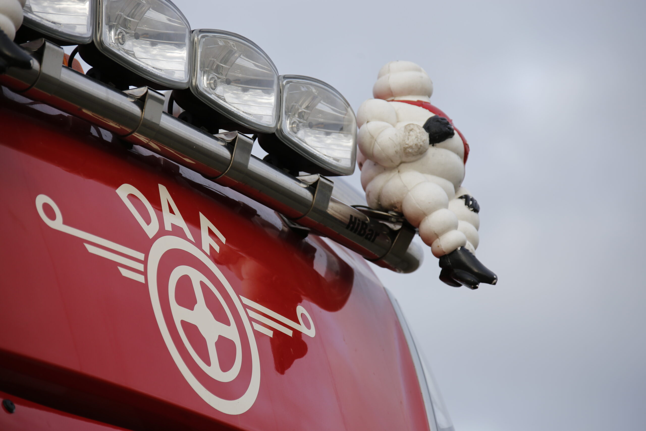 Rinus is een handige man: wat zijn ogen zien, maken zijn handen. Vooral met metaal is hij behendig. Zo heeft hij de keienvanger bij zijn voorruit zelf gemaakt. Ook de reeks lampjes achter de zijfenders, ingelegd in rvs, zijn eigen fabricaat. “Ik maak er een hobby van om roestvrij staal te polijsten tot het blinkt als chroom.” Rinus rijdt al een leven lang voor Monie. “Ik ben op mijn zestiende begonnen. Eerst twee jaar op de heftruck in de loods. Mijn vader reed toen op de enige vrachtauto van Monie. Toen hij stopte, heb ik zijn baan overgenomen en ben sindsdien gebleven.”