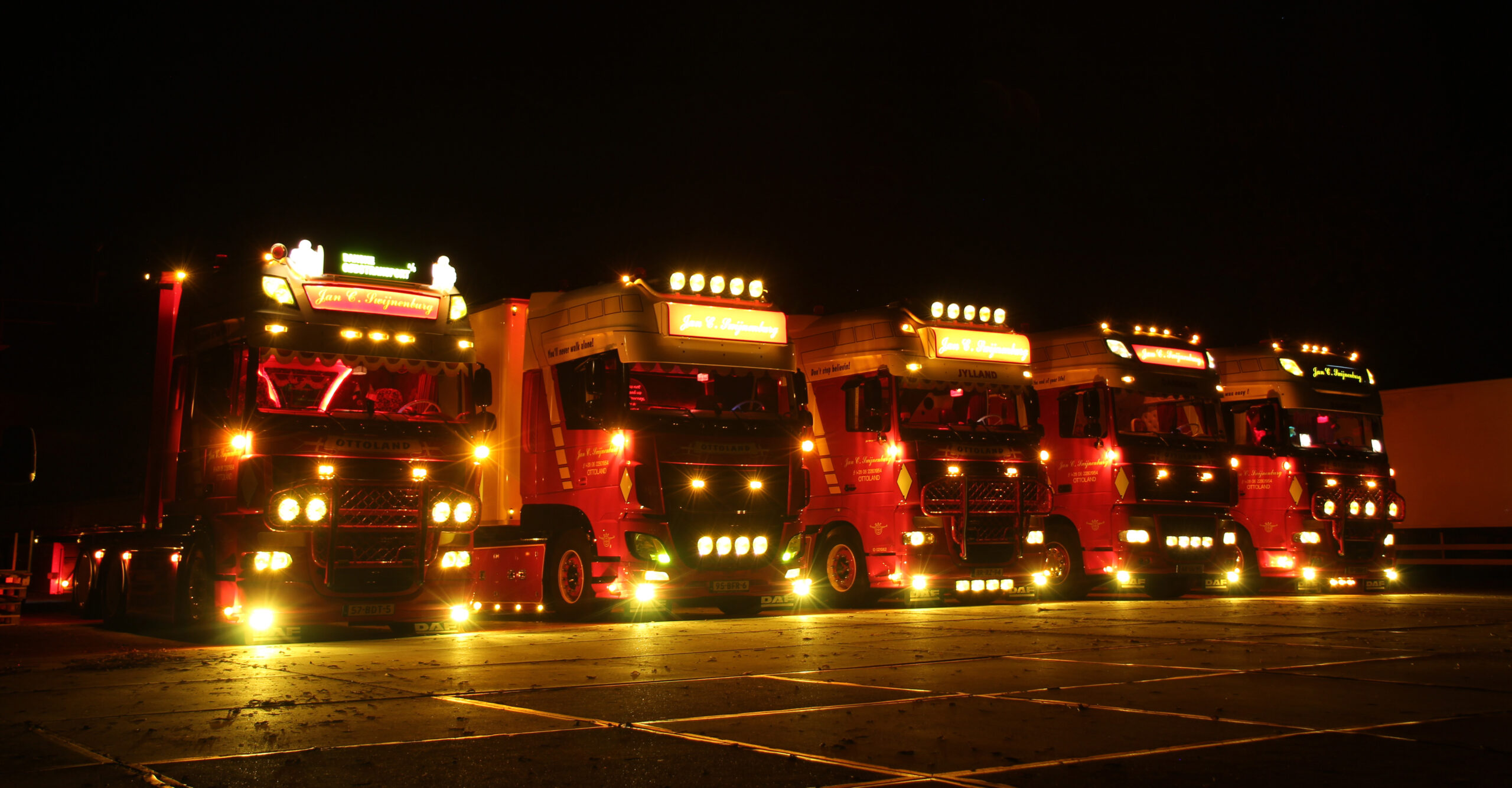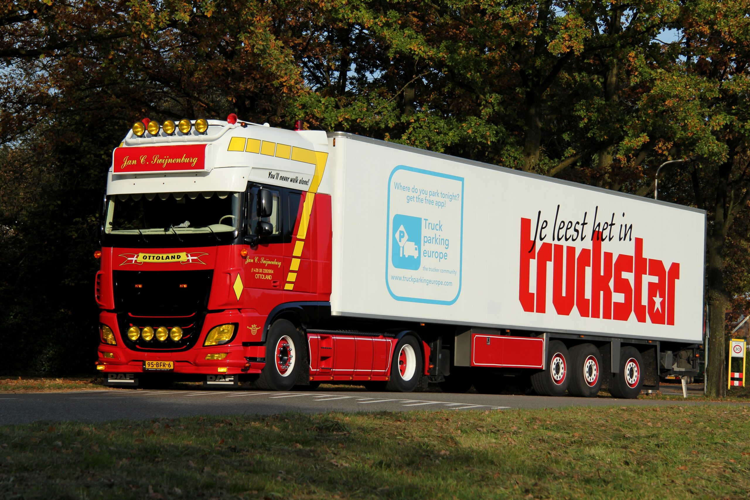 Als er met koeienletters ‘Je leest het in Truckstar’ op je trailer staat, is het natuurlijk best aardig wanneer je met die rijdende reclameposter in Truckstar komt. Zo geschiede in 2016. In het holst van de nacht melden we ons in Ottoland bij Jan C. Swijnenburg Transport, in de wereld van het transport heel bekend vanwege de vele gele lampen op de auto’s. Gastheer van vandaag, Johannes van den Berg, staat al te wachten.