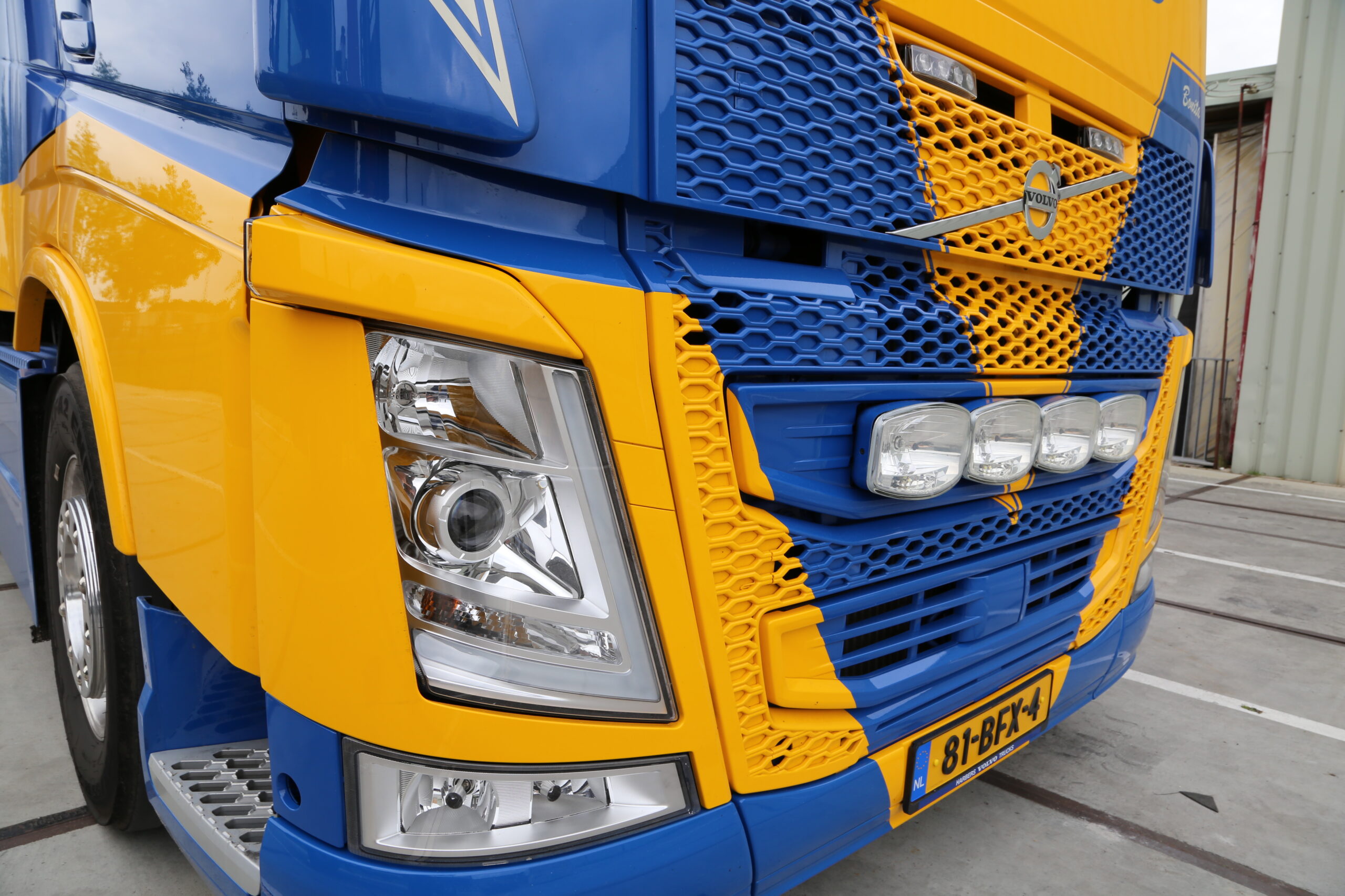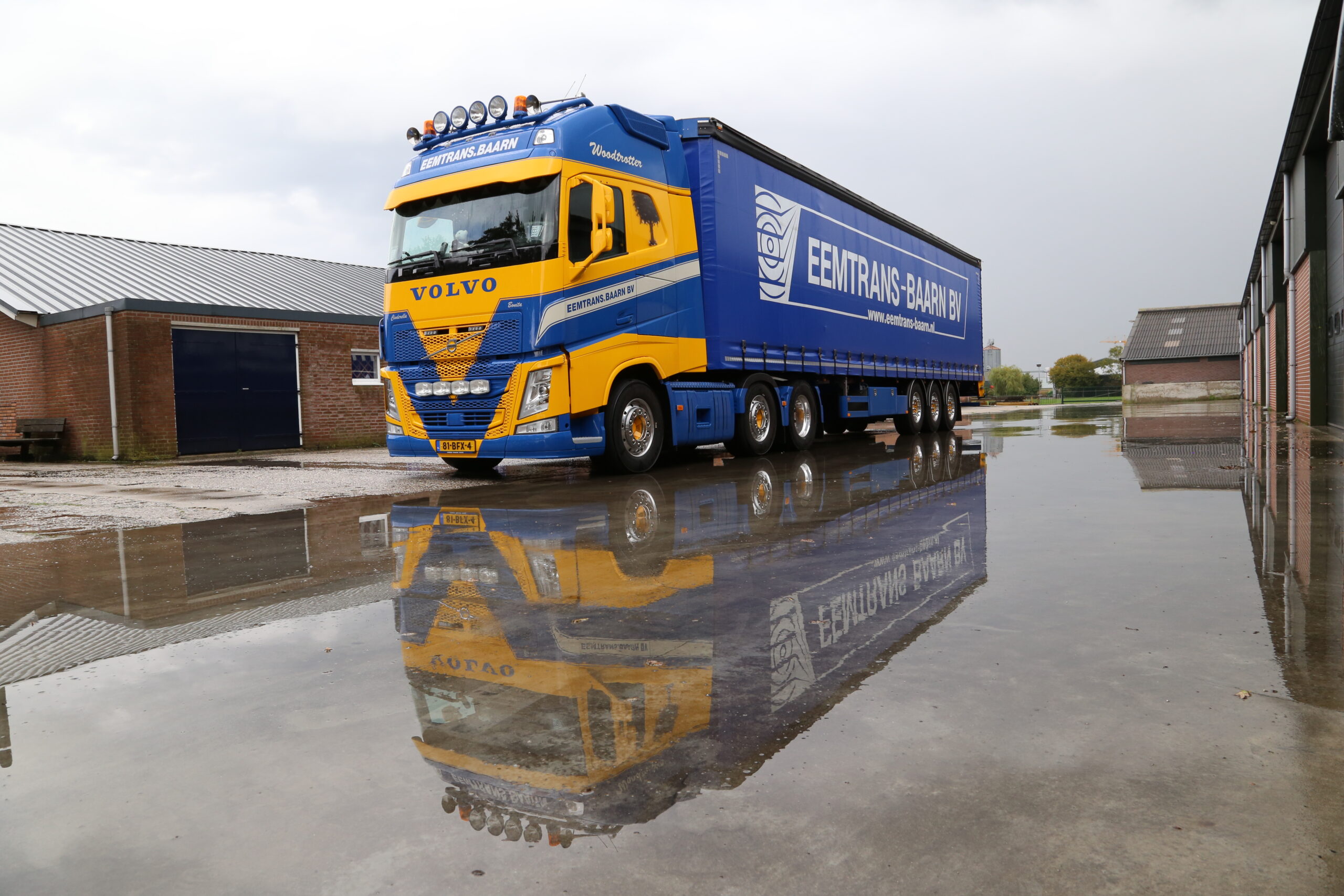 Niets is toeval bij Eemtrans. Ook bij de opbouw van de trucks is overal over nagedacht en, zo zien de Pacton-trailer Volvo FH er ook uit. Bij de werkbaarheid van de hele combinatie, maar bij de kleuren, het front van de Volvo en talloze andere details is niets aan het toeval overgelaten. Het oogt geweldig allemaal. ,,Een Zweedse truck in Zweedse kleuren’’, zegt Mike trots over het herkenbare Eemtrans-geel-en-blauw dat de cabine siert.