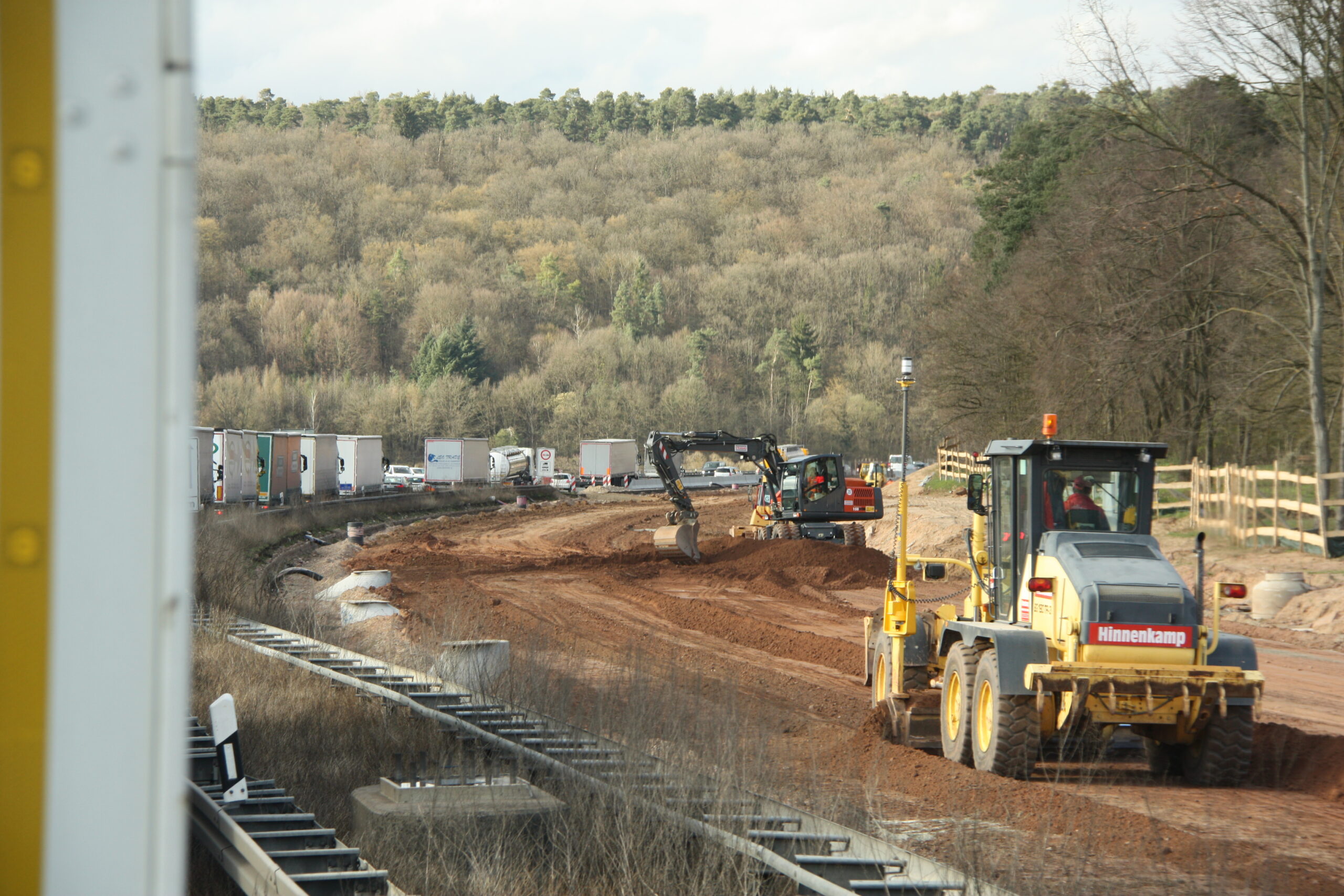 We steken de grens over bij Goch en kachelen snel omlaag. Tussen Leverkusen en Keulen is het drama op de ‘3’: baustellen, regen en Tweede paasdag. Nou, dan weet je het wel. De eerste bult naderen we in de buurt van Frankfurt. Als hij afdaalt, loopt de snelheid op tot 96 kilometer per uur. “Hoe kan dat nou?”, roept Goos. “Aha, de cruise control staat niet goed ingesteld. Het is allemaal nog een beetje wennen.”