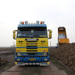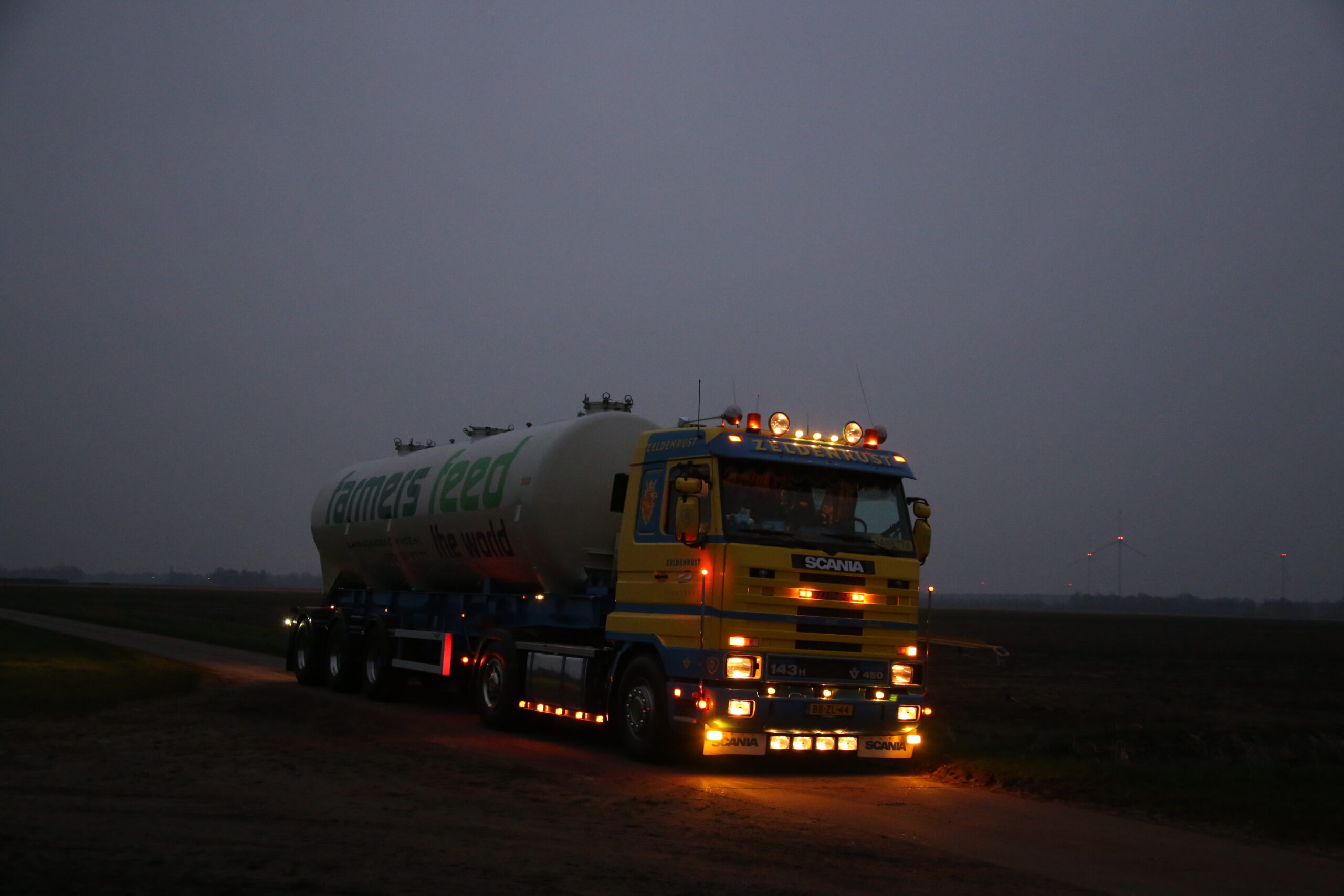 De Scania V8 van Zeldenrust is twintig jaar oud en twee keer de klok rond geweest, maar loopt nog als een zonnetje. Chauffeur Lubbert Meertens rijdt er ‘s zomers zand mee en ‘s winters schuimaarde. Het is donker en koud als voor Lubbert de dag begint. “Ik vervoer schuimaarde, een restproduct van de suikerproductie naar de boeren. Zij gebruiken het als grondverbetering”, legt Lubbert uit. Hij doet dit in opdracht van Bos Agra Service. Dit bedrijf heeft een sproeimachine waarmee de schuimaarde over het land verspreidt wordt. “Met drie vrachtwagens bevoorraden we die machine.”