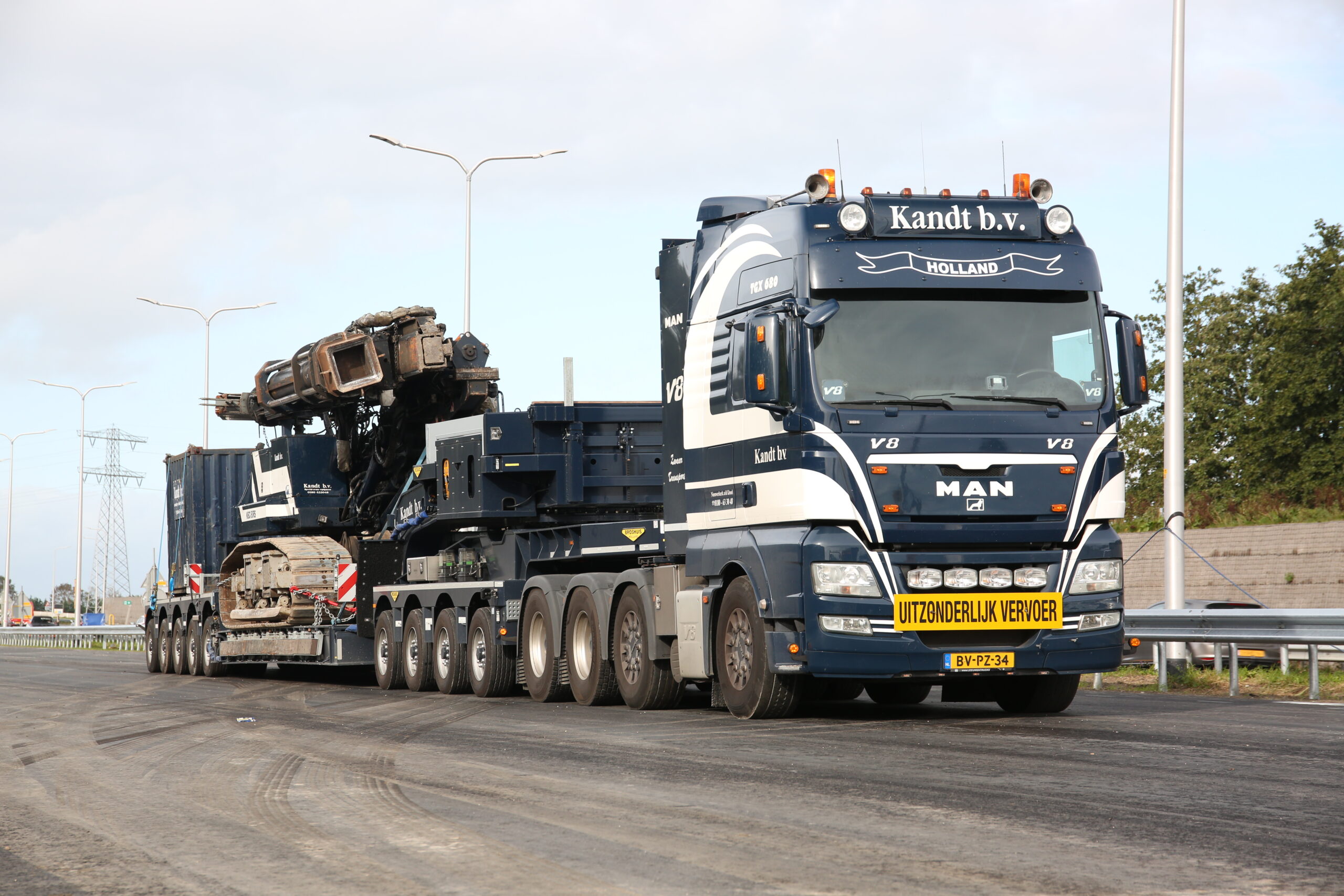 In de Truckstar Zwaar & Speciaal Transport Special (2018) schreven we over de MAN TGX V8 van Kandt Funderingstechniek. Zij brengen de zwaarste machines naar de krapste locaties. De nieuwe Broshuis dieplader laat in Noord-Holland zien wat hij kan.