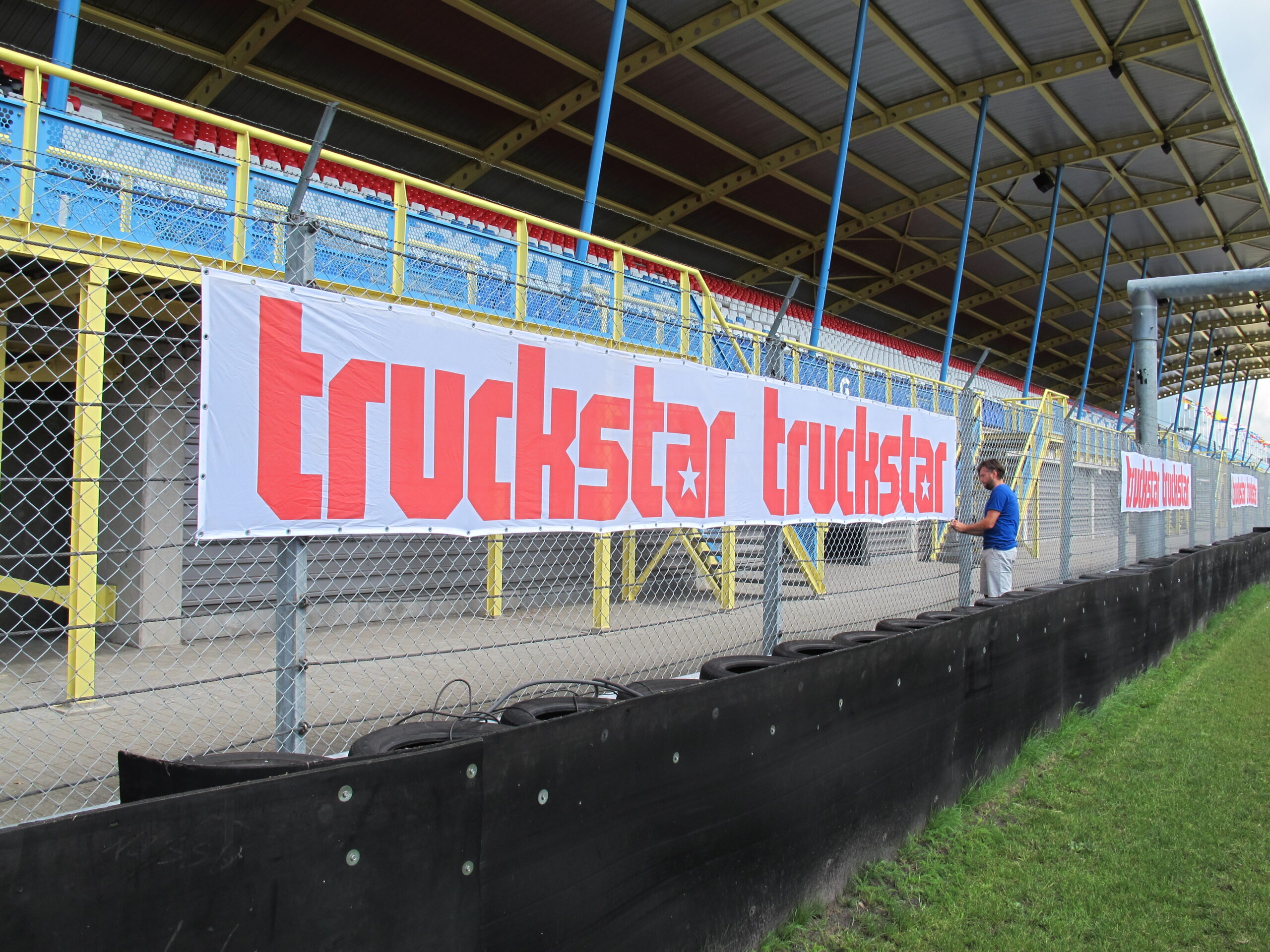 De voorbereidingen voor het Truckstar Festival zijn in volle gang. Zoals het ophangen van de Truckstar spandoeken.