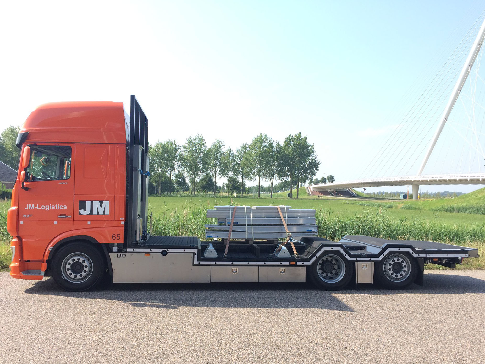 Door middel van het toepassen van wielkuipen aan de zijkanten van de laadbak, kunnen er met gemak, en zonder het demonteren van de wielen, grote machines worden vervoerd. Ook zijn er nieuwe op maat gemaakte aanhangwagens in bestelling. Dat zal resulteren in een opvallende, maar vooral multi-inzetbare, combinatie.