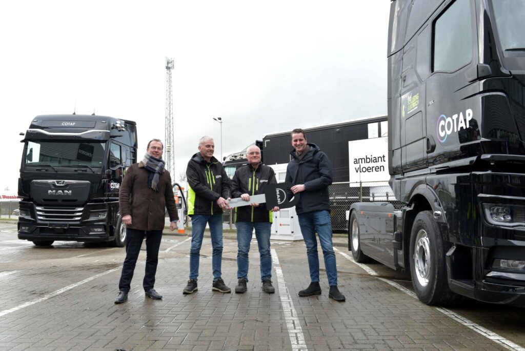 Full-service vloerengroothandel Cotap uit Genemuiden heeft de primeur voor Noord-Nederland met twee volledig elektrische MAN eTGX trekkers.