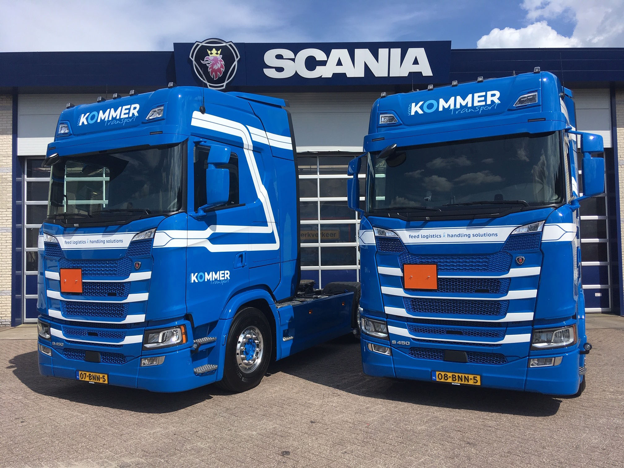 W. van Kommer Transport uit Barneveld heeft twee nieuwe Scania’s aangeschaft. De trekkers zijn voorzien van de 13 liter 450 pk sterke SCR-only motor.