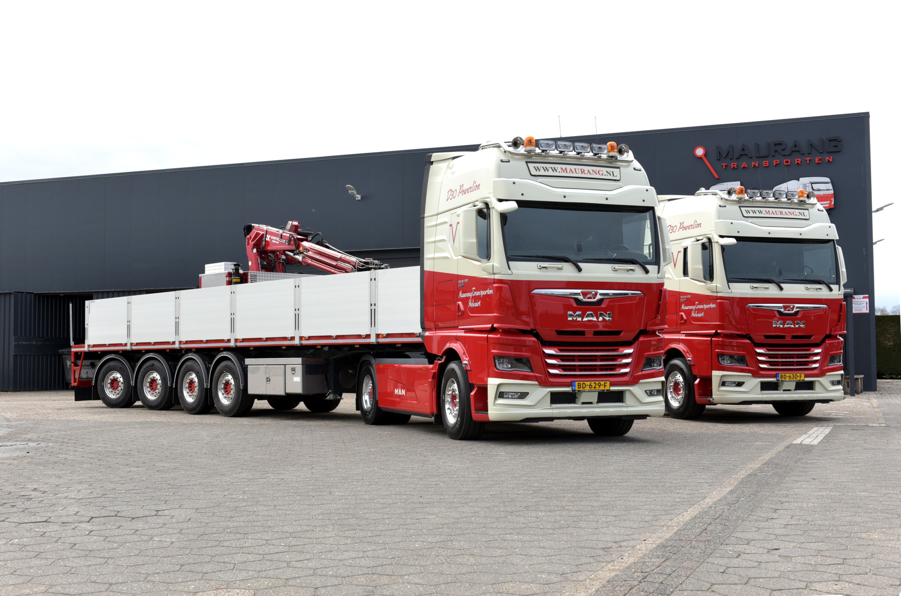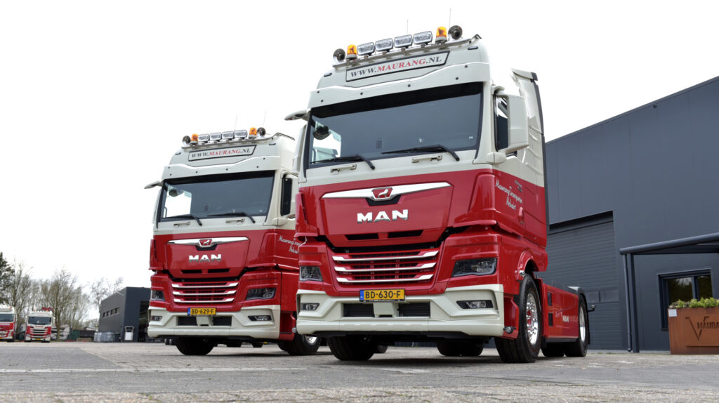 De nieuwe MAN trucks zijn door MANA Bedrijfswagens volledig volgens de specificaties van Maurang Transporten opgebouwd, waarna Cranen Fleetservice de trucks in de bekende huisstijl spoot. De beide 520 pk sterke trekkers zijn onder andere voorzien van een luchtgeveerde 8,5 tons vooras, een LED lichtbak, glanzende Alcoa wielen en de nodige extra verlichting. Ook in de cabine zijn er vele opties aanwezig die het comfort voor de chauffeurs ten goede komen. Eén van de twee trucks is voorzien van een extra kastenwand in de cabine uit de ‘Individual Line’ van MAN op wens van de chauffeur. ‘’Chauffeurs mogen bij ons binnen bepaalde grenzen aangeven wat ze erop willen hebben. Wij zijn ervan overtuigd dat een tevreden chauffeur een goede chauffeur is, en dat geldt in dit geval ook voor de keuze voor het merk’’ aldus Max Verbeek.