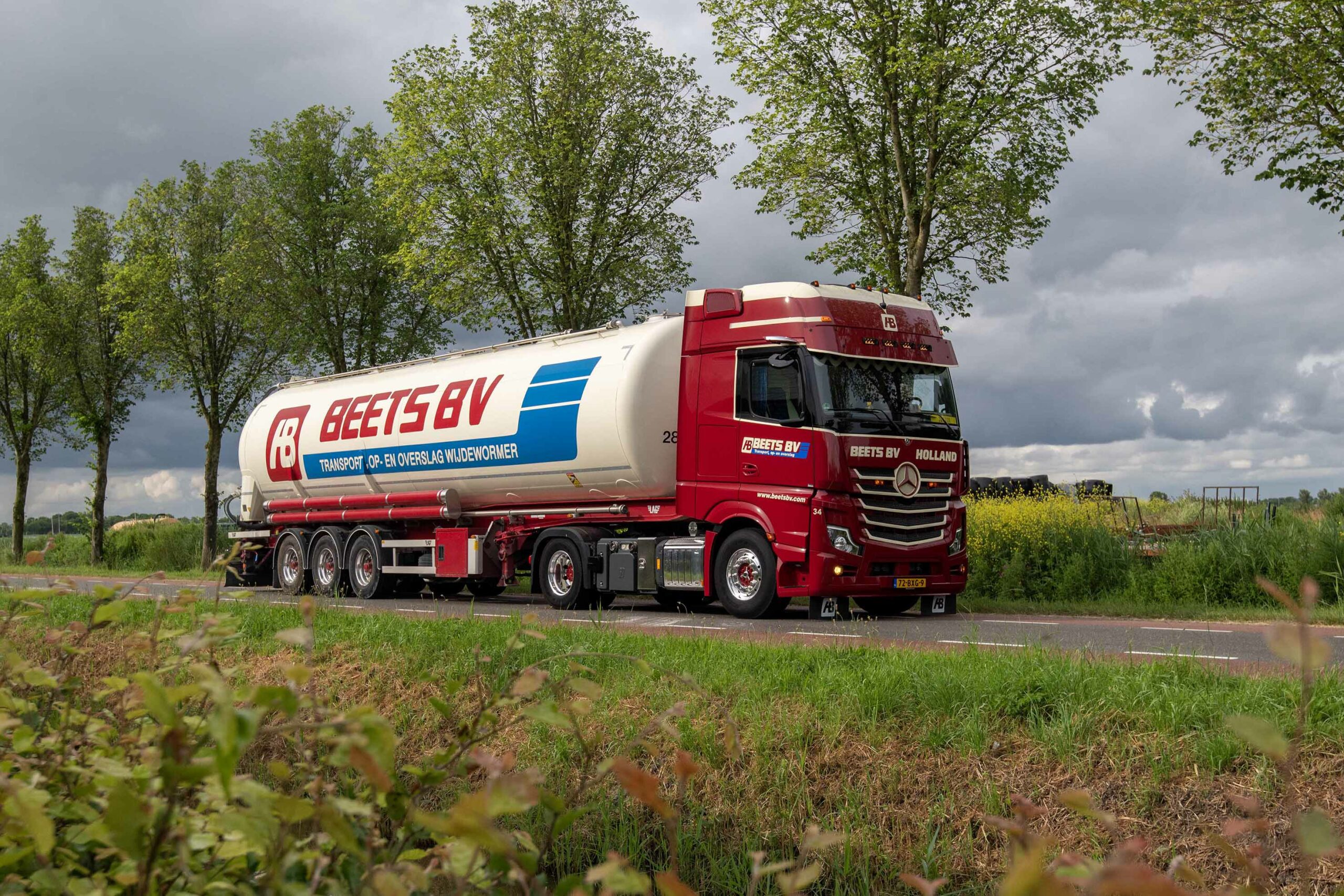 Dat Beets de twee nieuwe Actrossen heeft aangeschaft, is een groot compliment voor Mercedes-Benz Trucks. Aldo Beets, directeur-eigenaar vertelt hierover: “Ons wagenpark van 25 trucks bestaat verder volledig uit DAF trekkers. Zo’n 11 jaar geleden hadden we echter 2 nieuwe wagens nodig en Mercedes-Benz was het enige merk dat toen al een truck leverbaar had met de schonere Euro 6-motor. Daarom hebben we destijds een uitzondering gemaakt. En wat blijkt? Mercedes-Benz heeft deze ‘test’ met vlag en wimpel doorstaan. Qua onderhoud en kosten doen ze het namelijk erg goed en qua brandstofgebruik waren de Actrossen gelijk koploper. Daarbij zijn de chauffeurs, vader en zoon Timmer, zéér enthousiast: ze willen simpelweg niets anders meer. En dus kozen we, nu het tijd is om de trucks na nagenoeg 700.000 probleemloze kilometers te vervangen, wederom voor de Actros.”