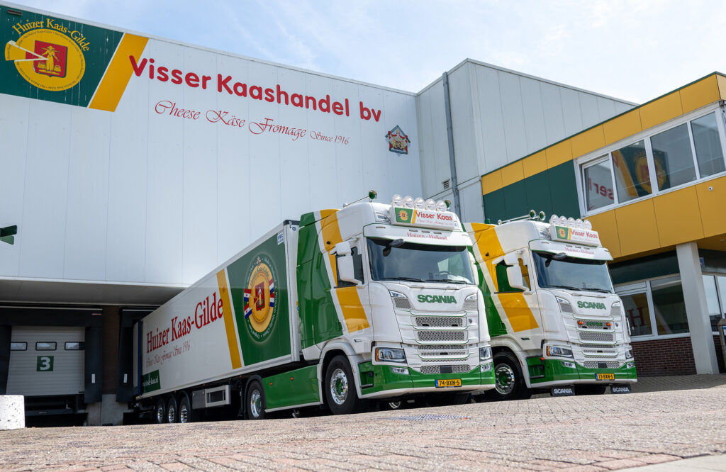 Visser Kaas uit Huizen nam afgelopen week twee nieuwe Scania’s in gebruik. De twee rondom luchtgeveerde 460R trekkers met een hoog dak en SUPER-aandrijflijn staan voor twee eveneens nieuwe koeltrailers die door Wezenberg zijn geleverd.