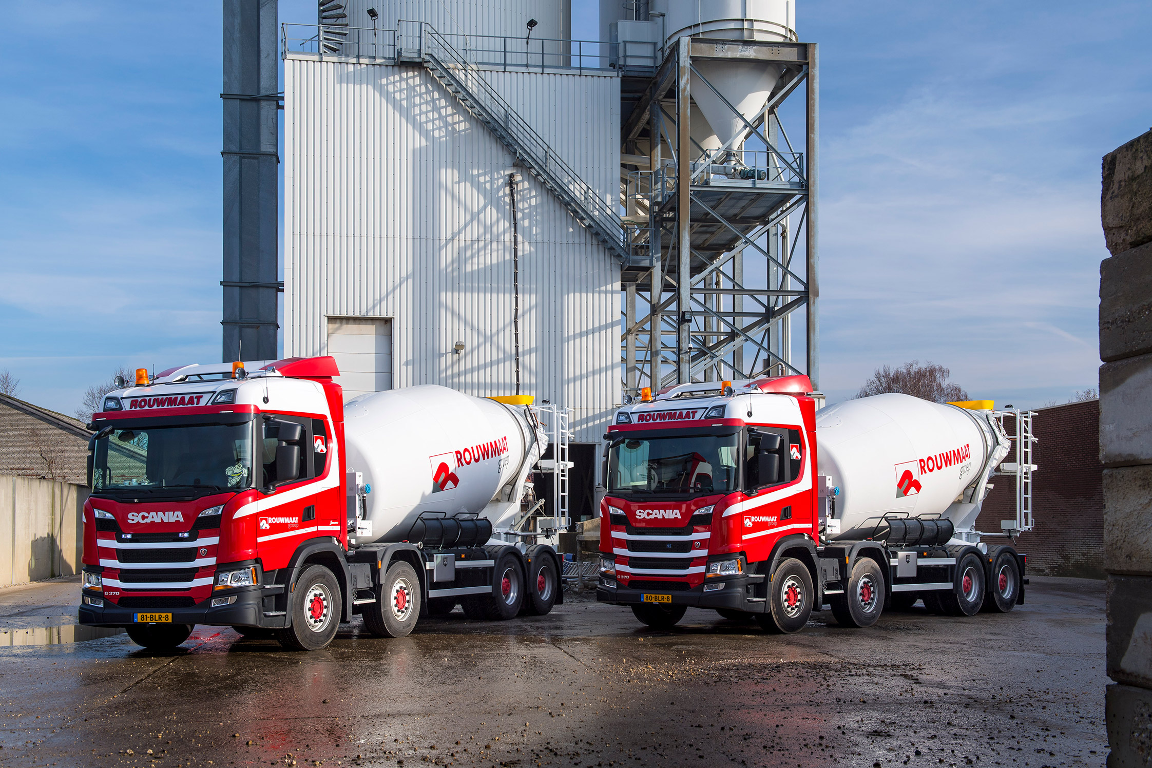 De Rouwmaat Groep in Groenlo nam recent twee nieuwe 12 kuubs betonmixers met een opbouw van Stetter in gebruik op basis van de Scania G370 8×4 met de middellange dagcabine met normale dakhoogte. Over de configuratie is samen met de dealer in Gaanderen lang nagedacht. Met als resultaat twee bijzondere voertuigen die helemaal op hun taak zijn toegesneden.