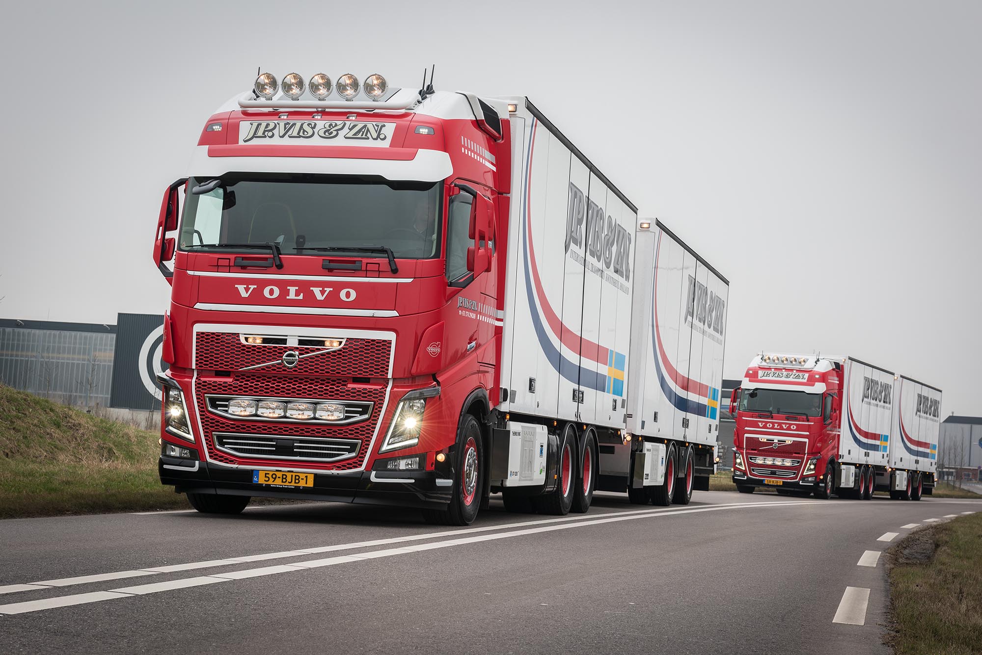 J.P. Vis Transport in Kwintsheul (ZH) heeft haar wagenpark uitgebreid met twee Volvo FH16 6×2 bakwagens. De transporteur heeft gekozen voor het motorvermogen van 750 pk voor dagelijks LZV-transport van groente, fruit, bloemen en planten door heel Zweden. De drie-assers met geconditioneerde opbouw werden afgeleverd door Volvo Group Truck Center Maasdijk.