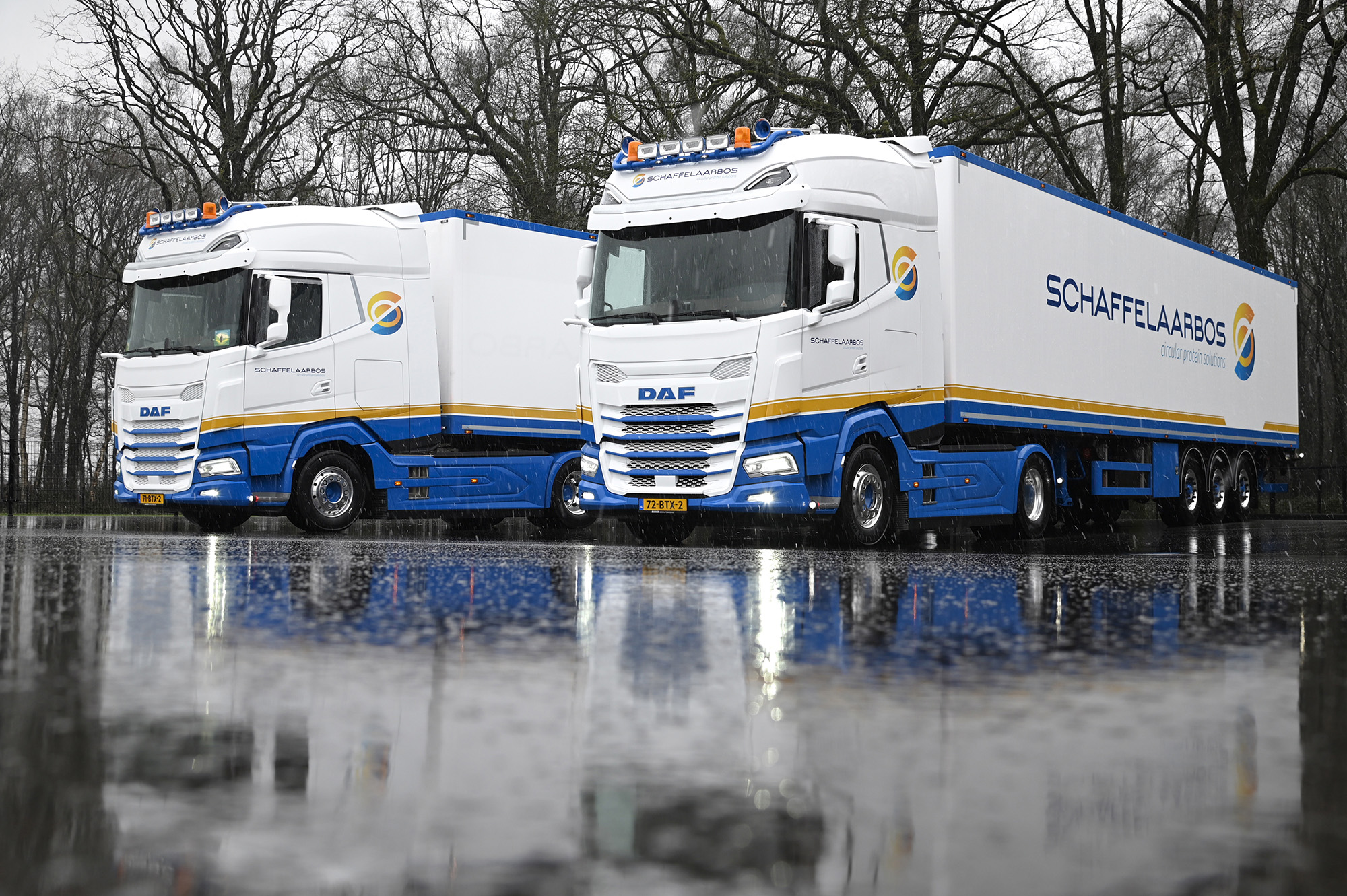 Bakker Bedrijfswagens heeft twee fraaie DAF’s afgeleverd aan Schaffelaarbos BV. Het gaat om DAF XG+ trekkers met 530pk die van alle gemakken zijn voorzien.