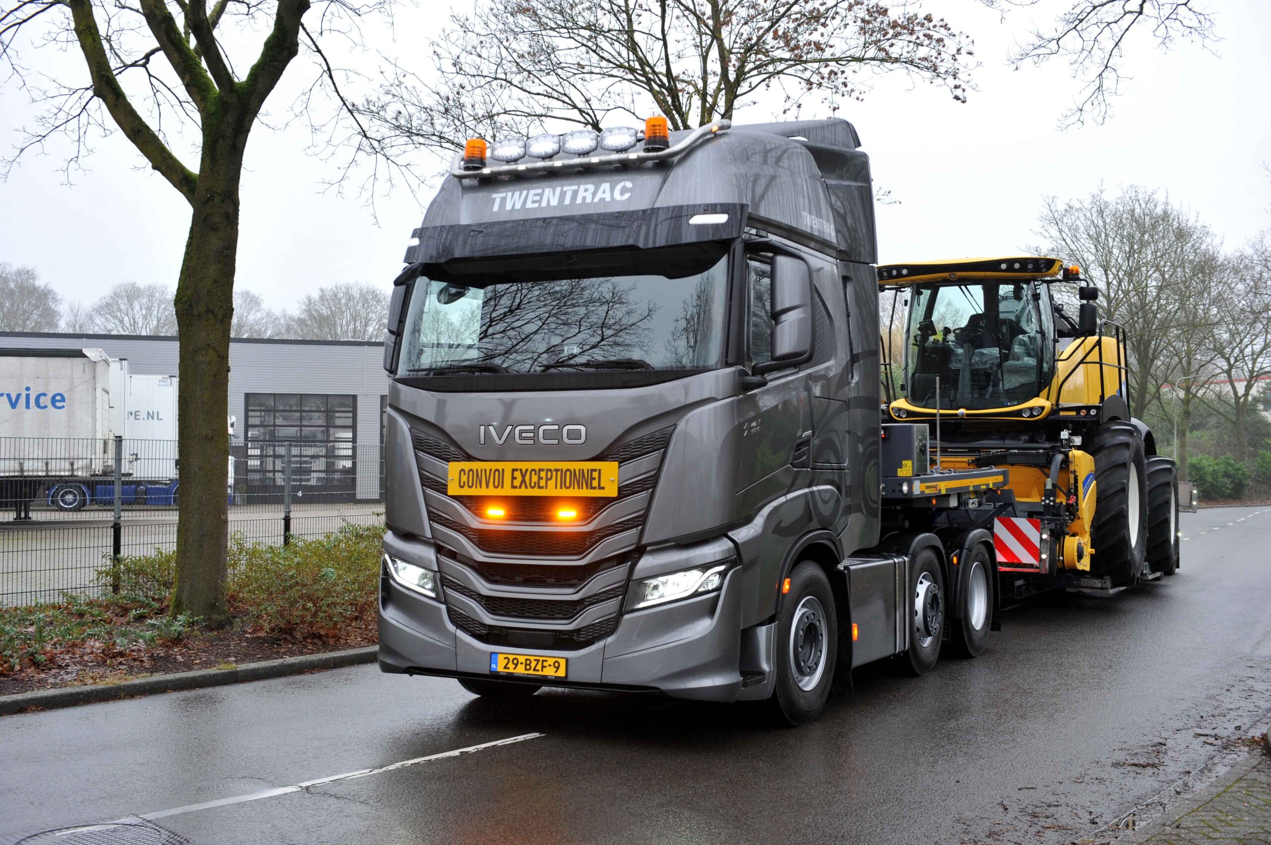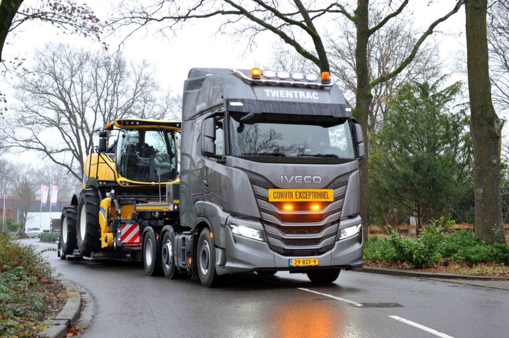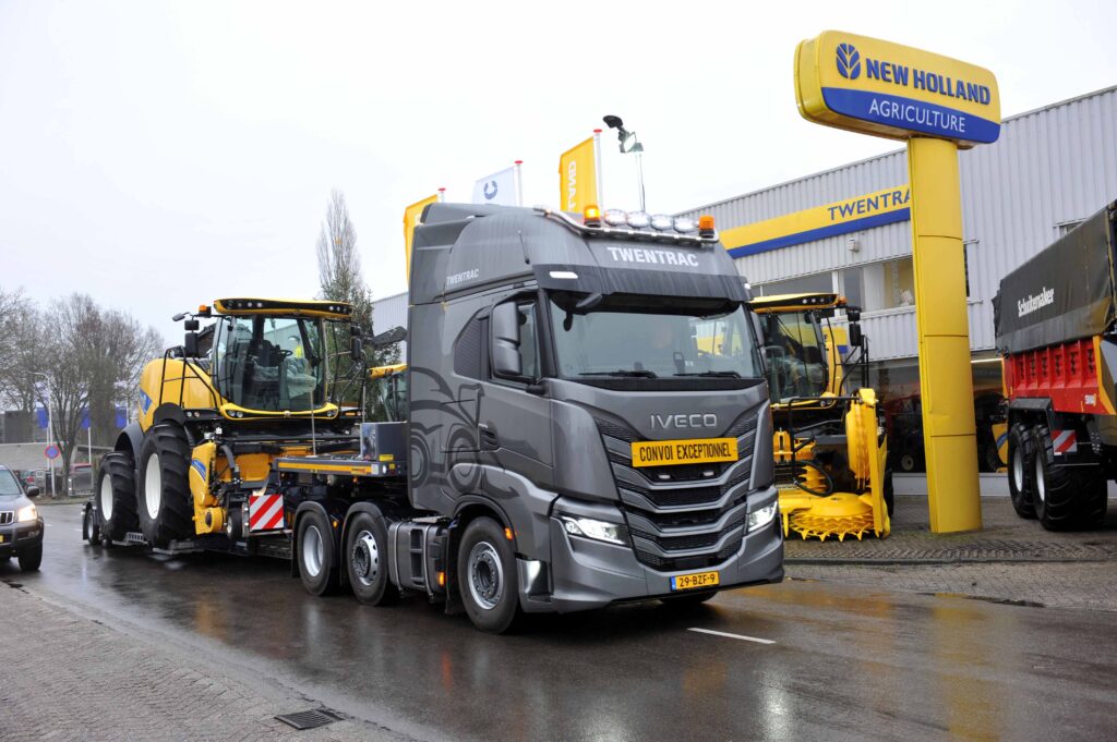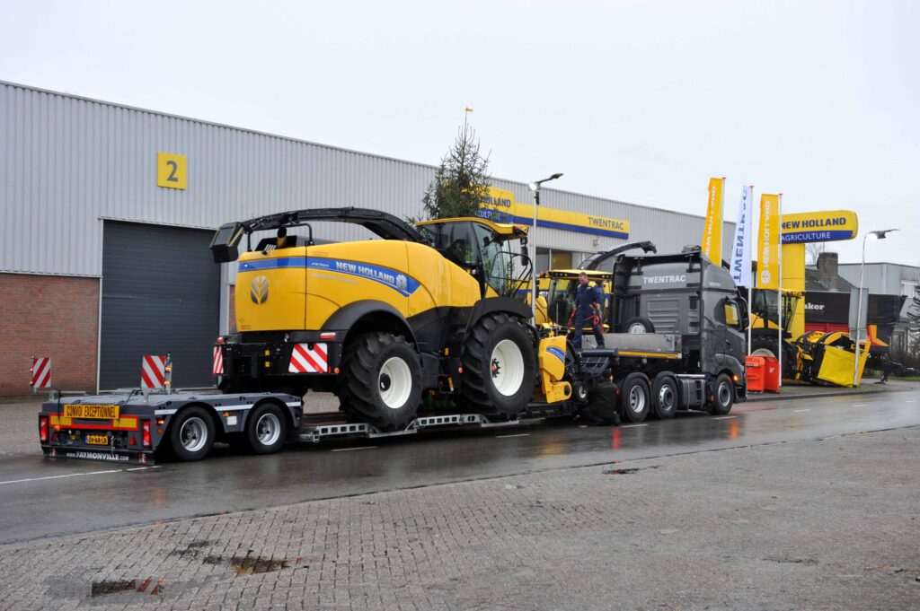 Twentrac in Holten is een landbouwmechanisatiebedrijf en dealer van onder andere New Holland, Schuitemaker en Veenhuis. Het bedrijf is gespecialiseerd in zelfrijdende hakselaars. Om een optimale service te kunnen bieden heeft Twentrac besloten om een eigen trekker- met opleggercombinatie aan te schaffen, zodat ze snel kunnen schakelen. De keuze viel, na uitvoerige demoritten op een Iveco S-Way 6×2 trekker met een Faymonville dieplader.