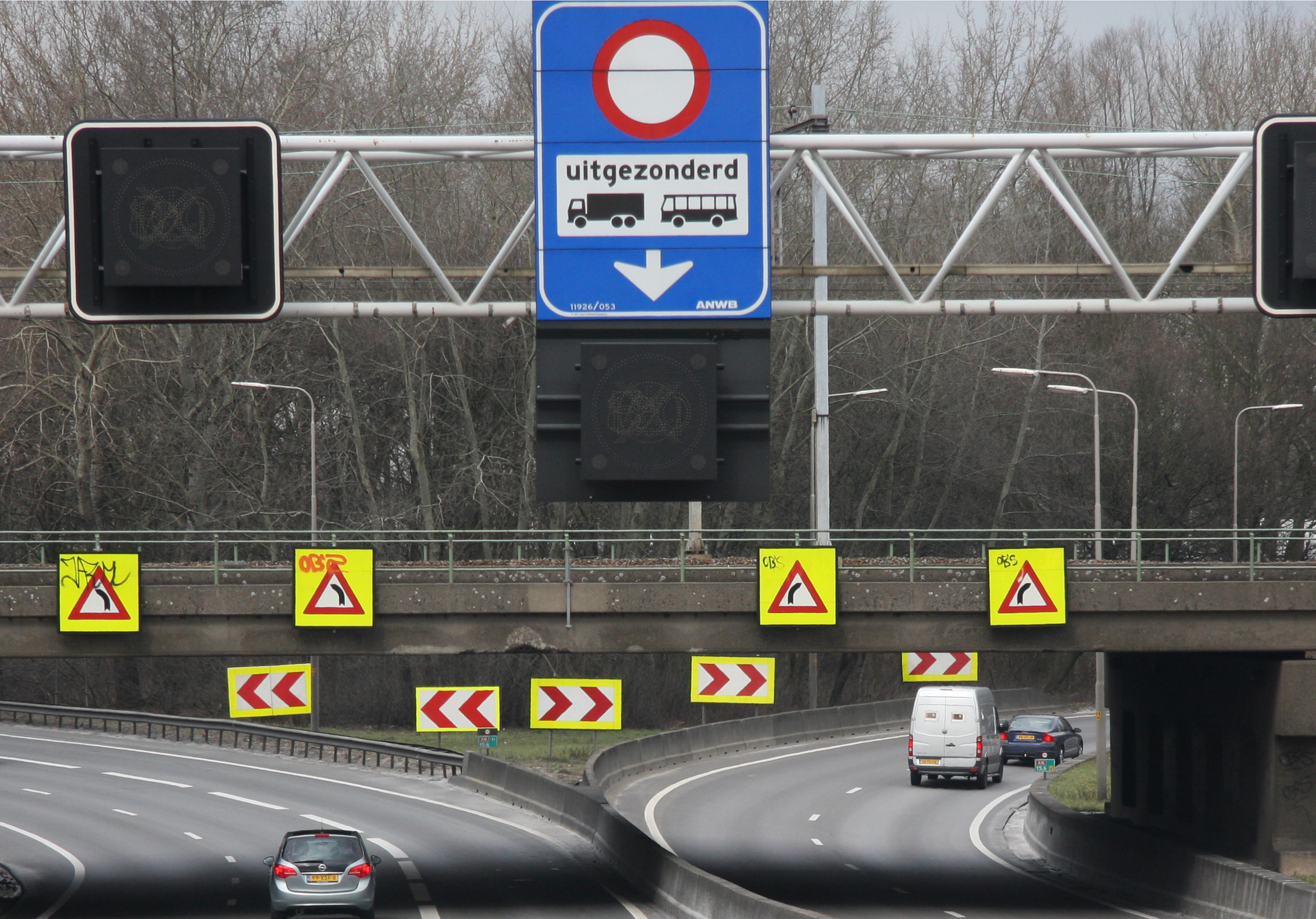 Foto: Vooralsnog is dit je keuze aan het noordelijke einde van de A16: linksaf de A20 op richting de A13 of rechtsaf de A20 op richting Gouda. In de toekomst zou je ook rechtdoor moeten kunnen om ten noorden van Rotterdam op de A13 uit te kunnen komen.