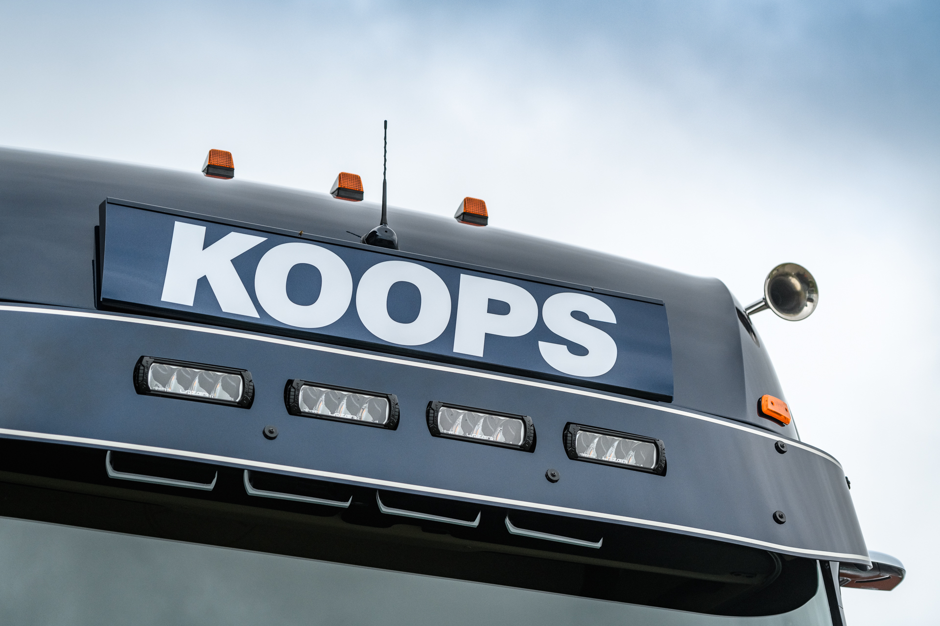 Marco Boere vult aan: “Qua uitstraling is er bij deze uitvoering nog een schepje bovenop gedaan, met metallic lak en een verlengde zonneklep met led-verstralers, de achterzijde volledig bekleed met traanplaat en een Deense achterbumper met dynamische verlichting. Een herkenbare Wolter Koops truck, maar met een unieke uitstraling.”