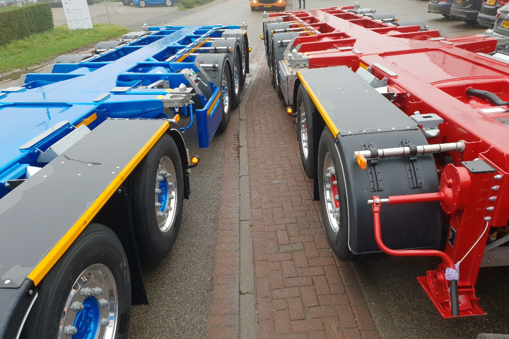 Het unieke zit hem in de afwerking, want veel aanbouwdelen zijn van RVS of gespoten in de kleur van het chassis. Verder is de meerwaarde van deze combitrailers dat het chassis deelbaar is, ideaal voor het laden en lossen van 20 ft containers bij verschillende adressen. De bediening van de trailers bevindt zich aan de bestuurderszijde.