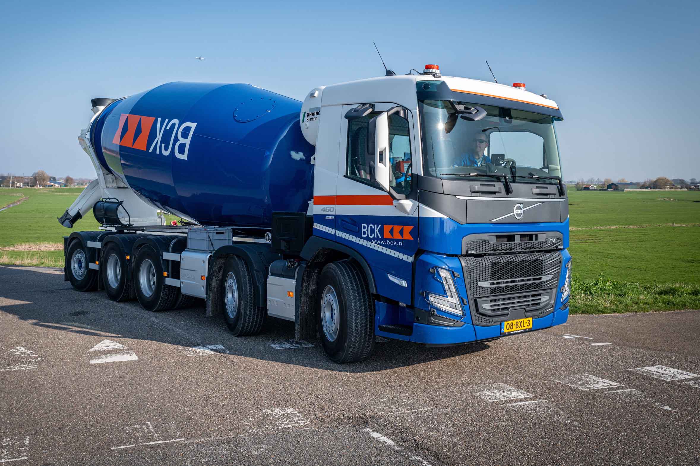 BCK produceert betonmortel, groutmortels, cementgebonden gietdekvloeren (Eco2floor) en aanverwante producten. Het transport doet het bedrijf met 22 betonmixers, waaronder twee nieuwe Volvo FM 500 10×4 betonmixers. “Het is voor het eerst dat de Volvo FM betonmixers in deze configuratie leverbaar zijn met luchtvering rondom”, zegt Roald van der Wal, directeur van BCK. “We hebben hiervoor gekozen om het rijcomfort nog verder te vergroten, ook in combinatie met het elektronisch geregelde stuurbekrachtigingssysteem Volvo Dynamic Steering. Chauffeurs vinden het een genot om met deze trucks te rijden. Ze voelen drempels praktisch niet meer.”