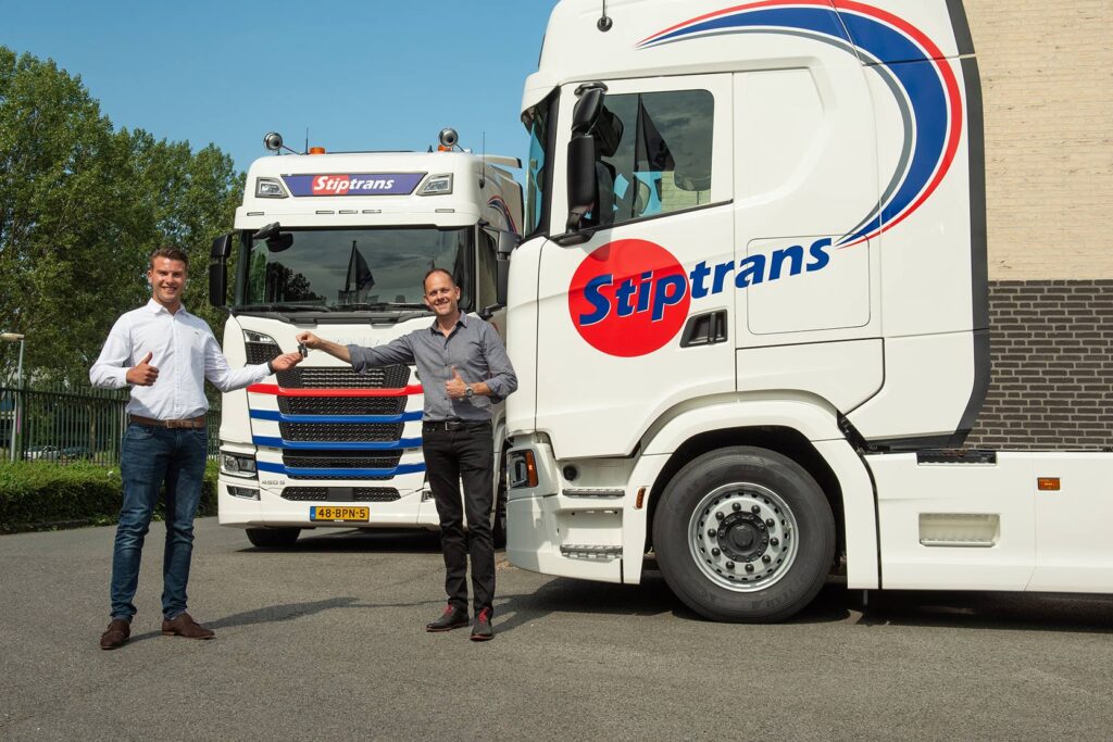 Baggio Stip, directeur/eigenaar van Stiptrans uit Nijmegen nam afgelopen week samen met zijn vader de sleutels in ontvangst van twee nieuwe Scania S450 4×2 trekkers met hydrauliekpomp. De 22-jarige ondernemer koos voor Scania omdat het merk hem het meeste kon ontzorgen. “Ik wil in feite één telefoonnummer voor alles wat met de truck te maken heeft. Dan kan ik mij optimaal focussen op mijn werk.”