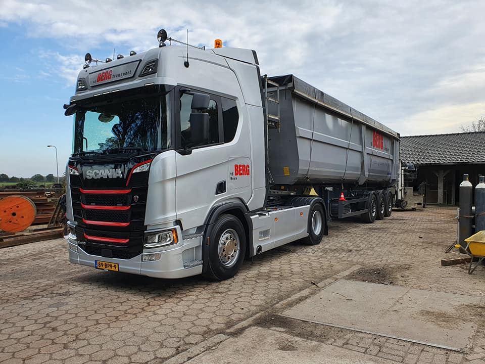 Van den Berg Transport uit Reek nam afgelopen week zijn eerste Scania in gebruik. Het gaat om een rondom luchtgeveerde R450 met een hoog dak en een hydraulische pomp voor het heffen van de kieptrailer. Eigenaar Petro van den Berg koos wel overwogen voor Scania vanwege het verbruik en de uitstraling van het voertuig.