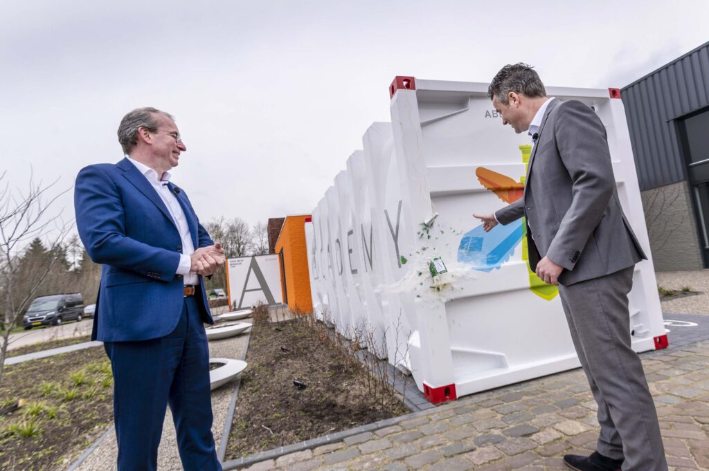 - CEO Rico Daandels en Director Staff Services Michiel van Kessel ‘dopen’ de silocontainer voor het pand.