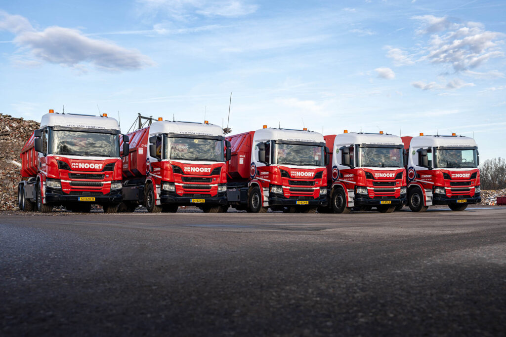 Van den Noort is gespecialiseerd in afvalinzameling en recycling. Met veertig voertuigen in de opvallende rood/witte bedrijfskleur wordt er in een straal van zeventig kilometer rond Dongen dagelijks allerlei soorten afval bij zowel bouw- en industriële bedrijven als particulieren opgehaald. Sinds 2006 is Scania onderdeel van het wagenpark en inmiddels bestaat de helft van de vloot uit de P-serie.