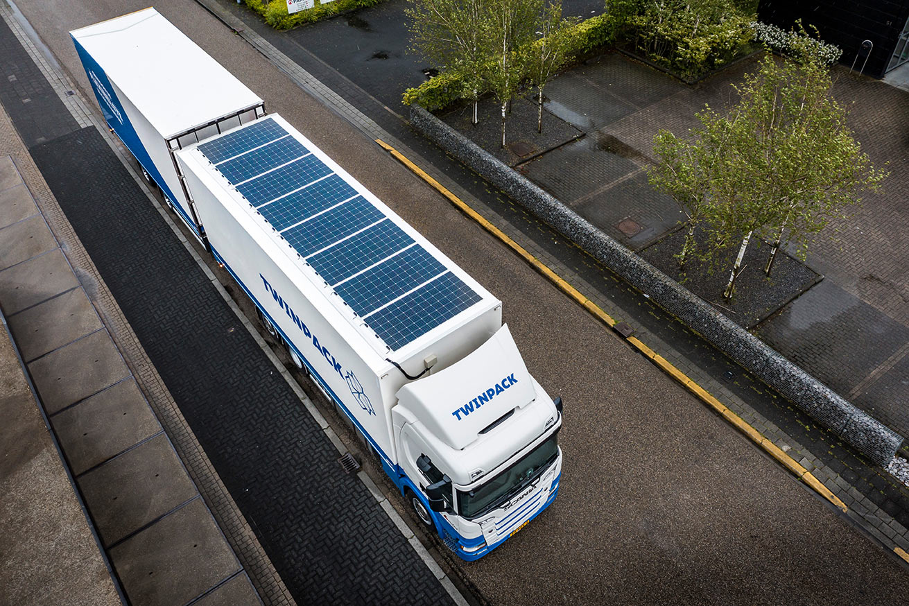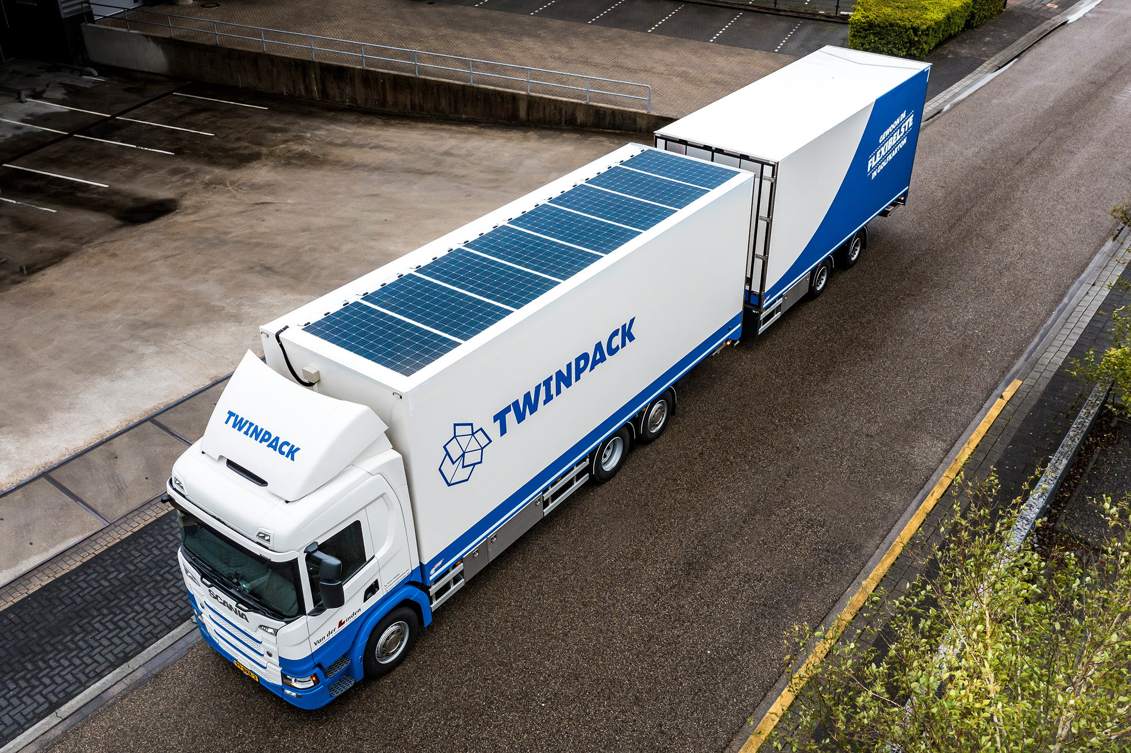 - Bijzondere Scania G370 bakwagen met SolarOnTop zonnepanelen voor Van der Linden uit Hillegom. Directeur Frans Zoetmulder: “Ik ben voortdurend op zoek naar mogelijkheden om onze carbon voetafdruk te verkleinen en een signaal voor vergroening af te geven.”