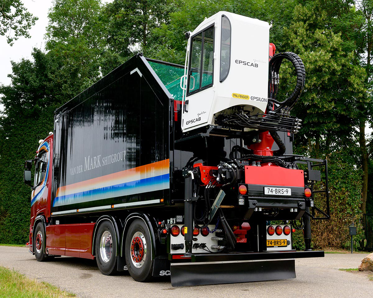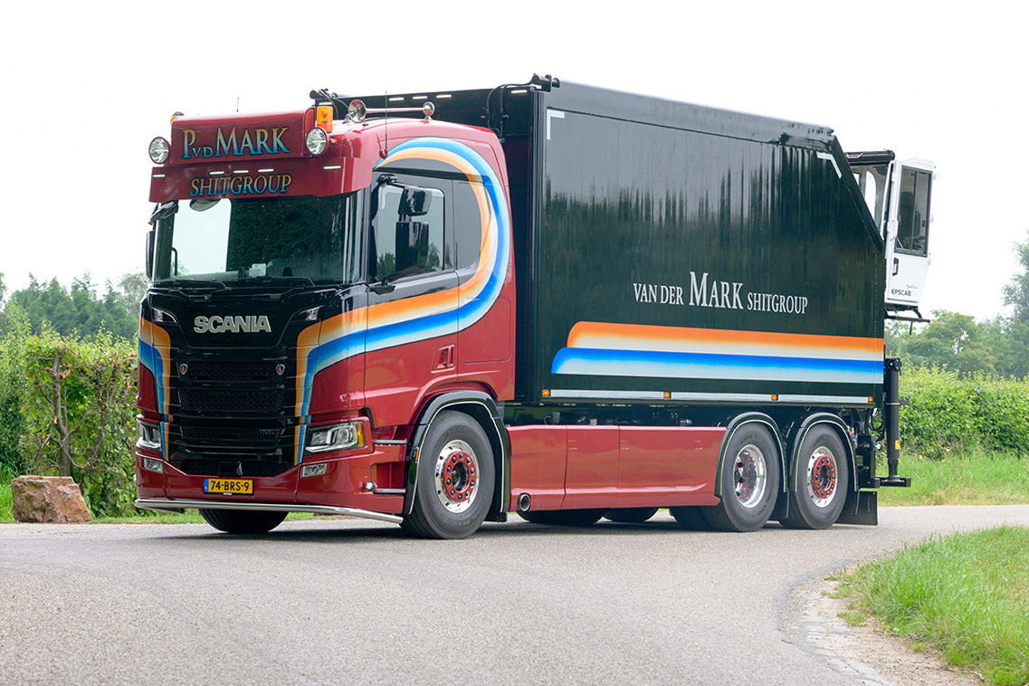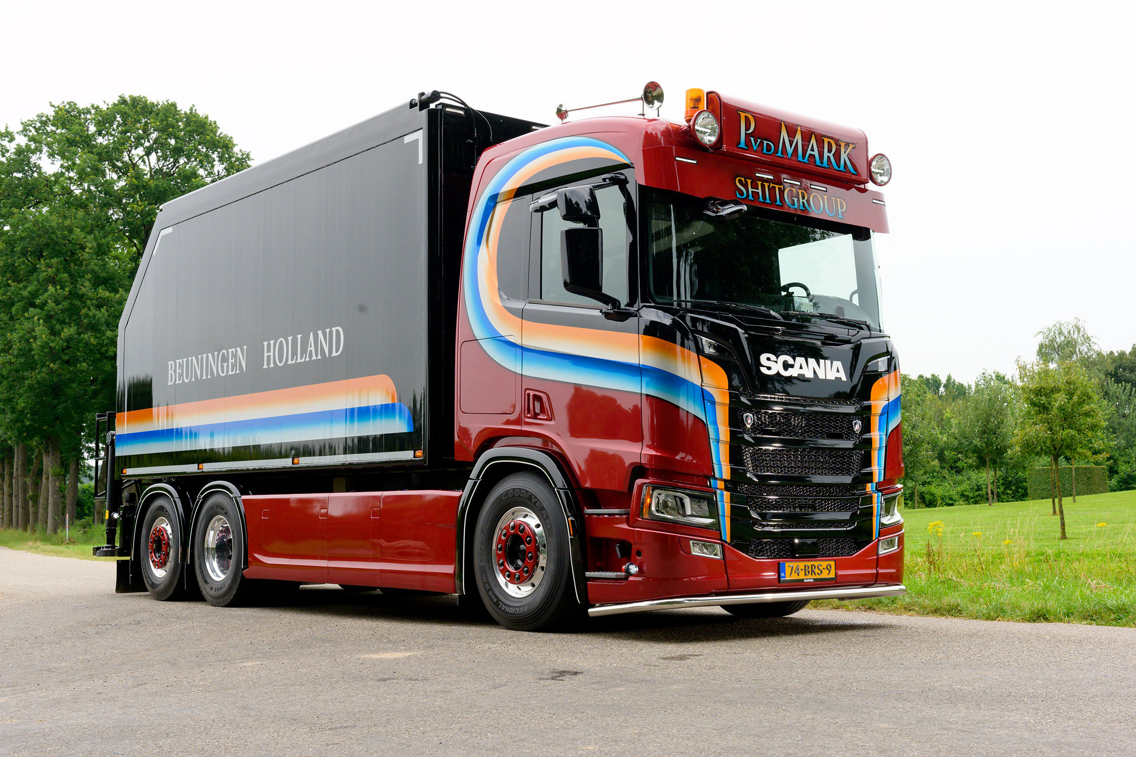 Paardenmesthandelaar Patrick van der Mark uit Beuningen zette onlangs een nieuwe Scania R500 CR20N bakwagen als 6×2*4 met een gestuurde naloopas op de weg. Bijzonder is dat Van der Mark de kippende aluminium bak in eigen huis vervaardigt en plaatst. Ook de afzetbare kraaninstallatie is door zijn monteurs zelf op het voertuig gezet.