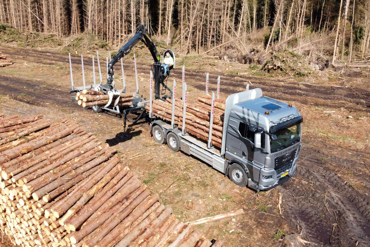 Jan van der Weide & Zn Transport BV uit Nieuweroord is gespecialiseerd in het transport van rondhout. Met negen eigen combinaties vervoert het bedrijf hout uit de bossen voor de papierindustrie, houtzagerijen en de spaanplaatindustrie in met name Nederland en Duitsland. De nieuwste aanschaf is een MAN TGX 33.510 6×4 met laadkraan en aanhangwagen.